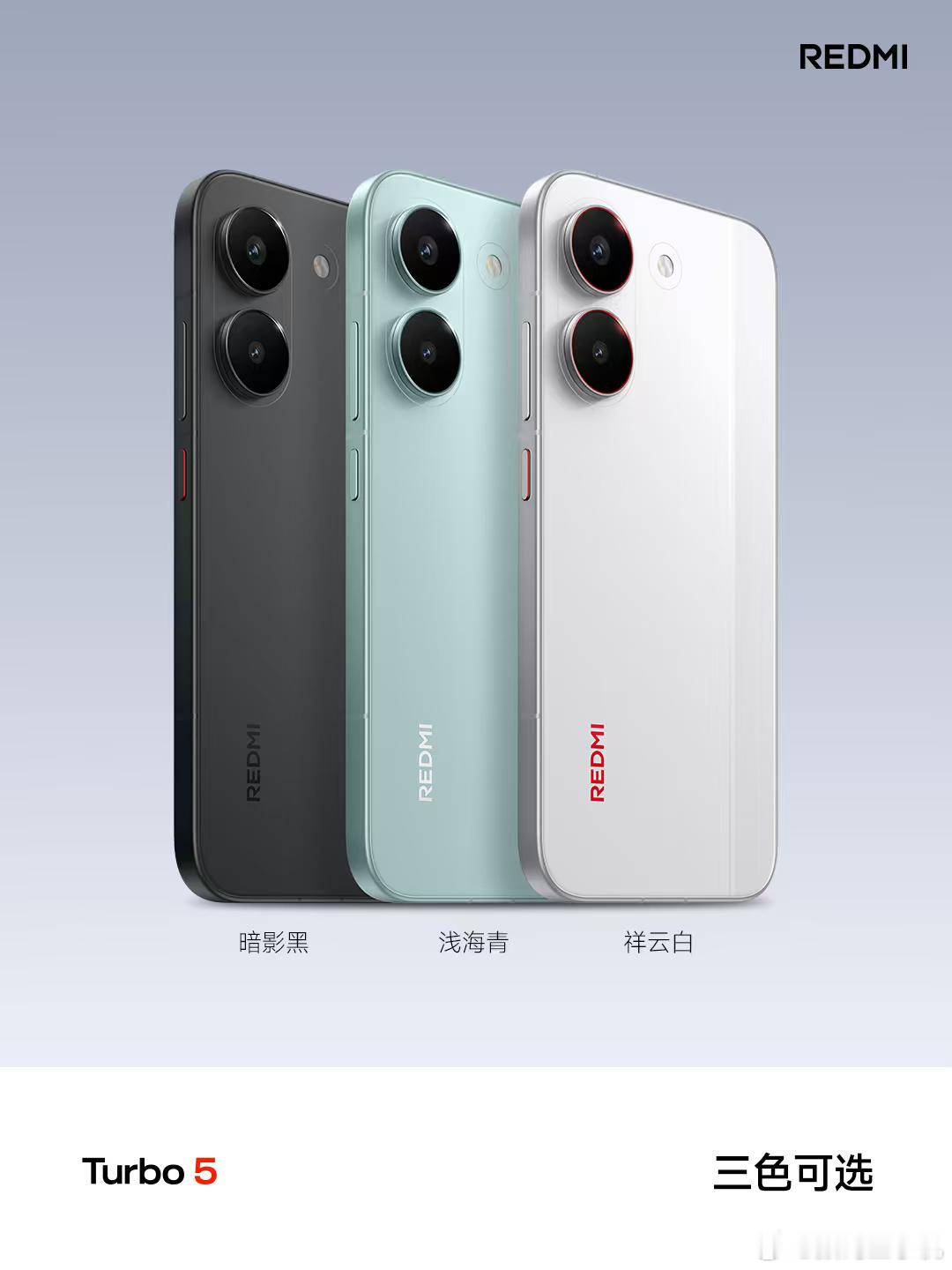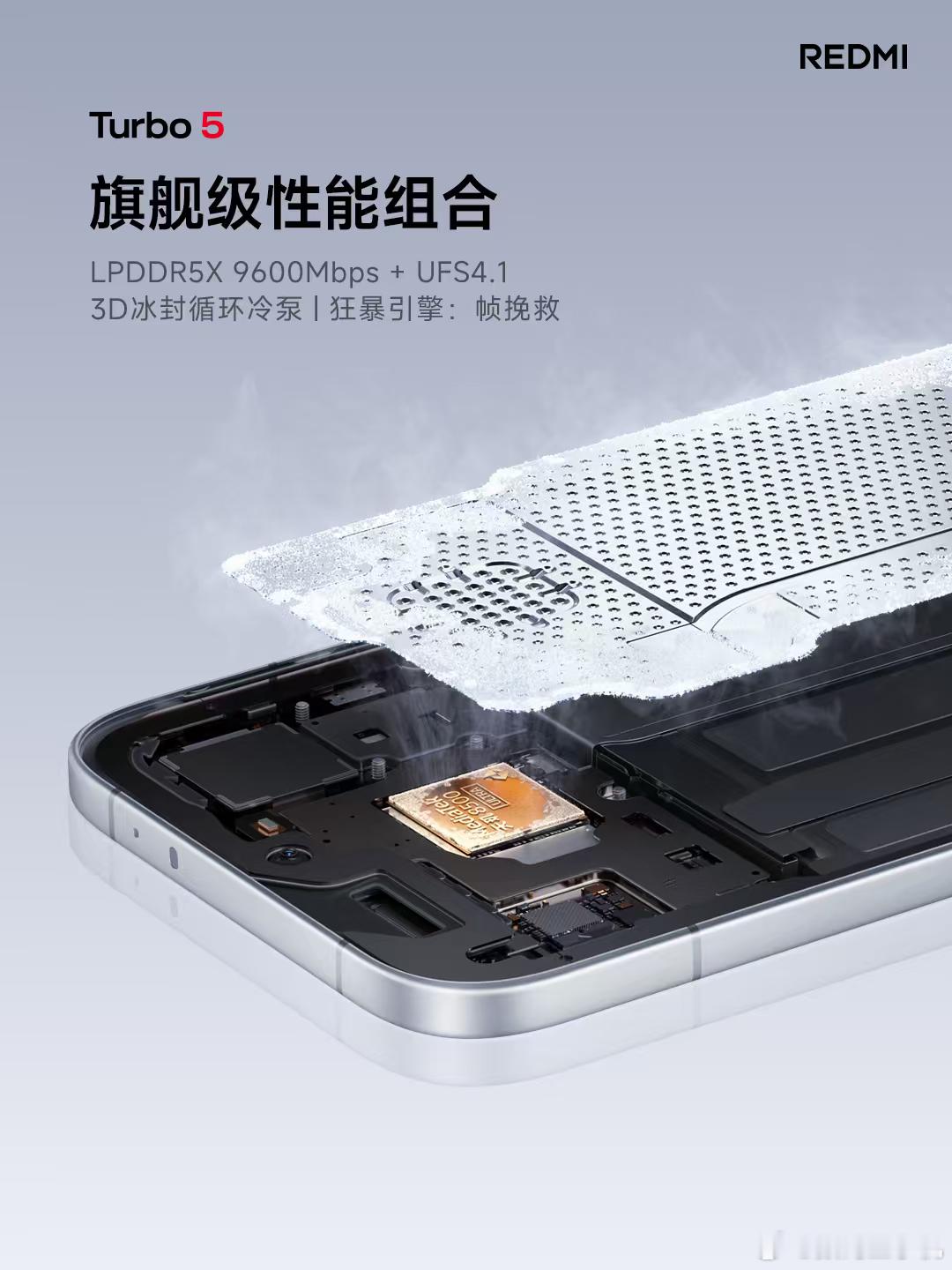 Turbo5 质感升级,体验更出众① 6.59 英寸黄金中尺寸,兼顾手感与视效② 2K 档罕见金属中框,质感出众,坚固耐用③ 7560mAh超大电量 + 100W有线秒充,电力持久④ 更有 IP66、IP68、IP69、IP69K 防水大满贯暗影黑、祥云白、浅海青,三色可选Turbo5 既有旗舰性能,更具超高能效首批搭载天玑8500-Ultra 高性能低功耗平台搭载旗舰级 3D 冰封循环冷泵,高速存储组合最新狂暴引擎,CPU/GPU/DDR 一体化调频国民 MOBA 游戏对比实测,满帧表现,功耗更低红米Turbo5发布会