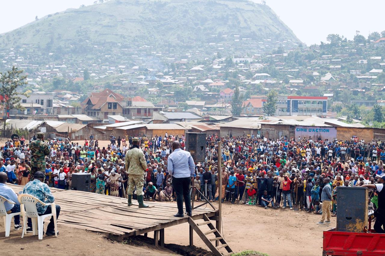 南基伍省 在气氛热烈的集会上,省长帕特里克·布苏·布瓦·恩格维与米诺瓦民众共同参与了一项公民活动。安全保障、冲突解决、基础设施重建:一切都经过周密安排。