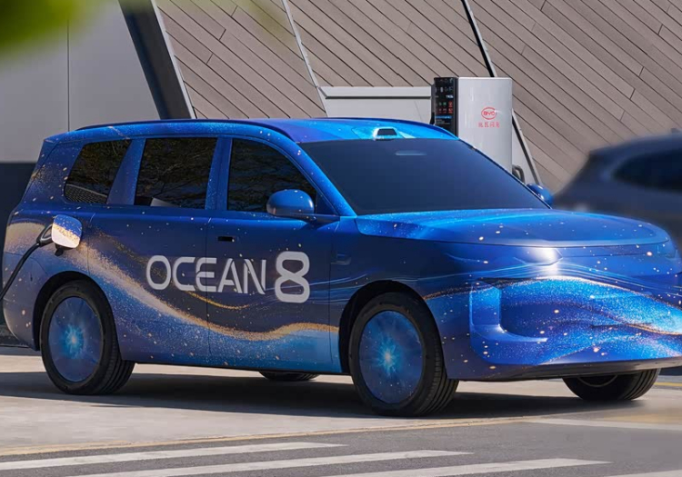 疑似比亚迪海狮08谍照曝光,整体轮廓有些圆润,和腾势N9有些相似,门把手还是内凹