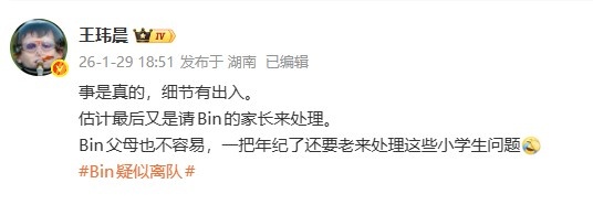 媒体人:事是真的 细节有出入 估计最后又是请Bin的家长来处理