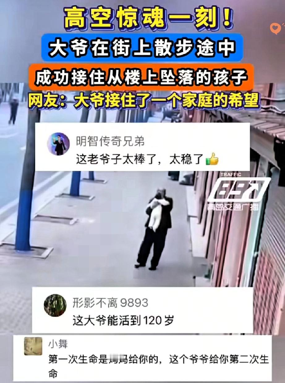 世界之大无奇不有,大爷散步时顺手救下一名婴儿,这哪是巧合,分明是藏在烟火里的缘分与福报! 总说前世修福才能得今生庇佑,这孩子能撞上心软又勇敢的大爷,真的是攒了几辈子的好运气,大爷这一伸手,直接给一个家庭续上了圆满。 我始终觉得,所谓缘分从不是虚无的说法,是善良的人自带磁场,刚好能接住身处险境的人,所谓福报也不是空谈,是每一次伸手相助,都在为自己积攒福气。 大爷这份下意识的善意,比任何祈福都管用,这样心善的人,必然多财多福多寿,孩子更是大难不死,往后定能带着这份幸运好好长大。 善良从不是刻意而为,是刻在骨子里的本能,大爷顺手的举动,藏着最动人的人间暖意,也给所有人上了一课,善意从不会白费。 你们觉得这份跨越年龄的缘分,是不是世间最暖心的馈赠?有没有见过身边这样顺手行善的暖心瞬间?