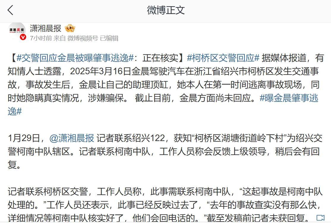 对于金晨的印象,是停留在《庆余年2》中的“叶灵儿”身上。 因为这个角色,金晨没少被骂。 其实她也挺冤的,如果从第一部她就开始演“叶灵儿”,估计也不会被骂得这么惨。 之后,也没见她的其他作品。 没想到,这两天,金晨的名字频频登上了热搜榜的前列,并且热度居高不下。 究其原因,却是曝出她于去年3月份驾车时发生交通事故,然后她让助理顶缸,自己逃逸。 这事闹得有点大。只是目前为止,还没有最终的定论。 不过,去年3月发生的事情,为何到现在才被曝光出来? 感觉有点匪夷所思。 不过对于金晨,倒真没什么现象,唯一的一个“叶灵儿”却也败光了观众缘。 这事到底真相如何,最终还得看官方的消息为准吧。 就先不作评论了。