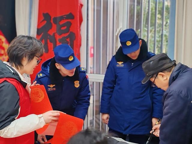 活动中,社区特别邀请正在开展节假日消防安全检查的消防员来到现场。书画社老师为他们精心书写了“红门担使命,蓝焰保平安”的对联,并送上满载祝福的福字。“感谢社区的关心,这副春联我们会贴在队里,这是最好的新年礼物。”一位消防员接过春联时感动地说。