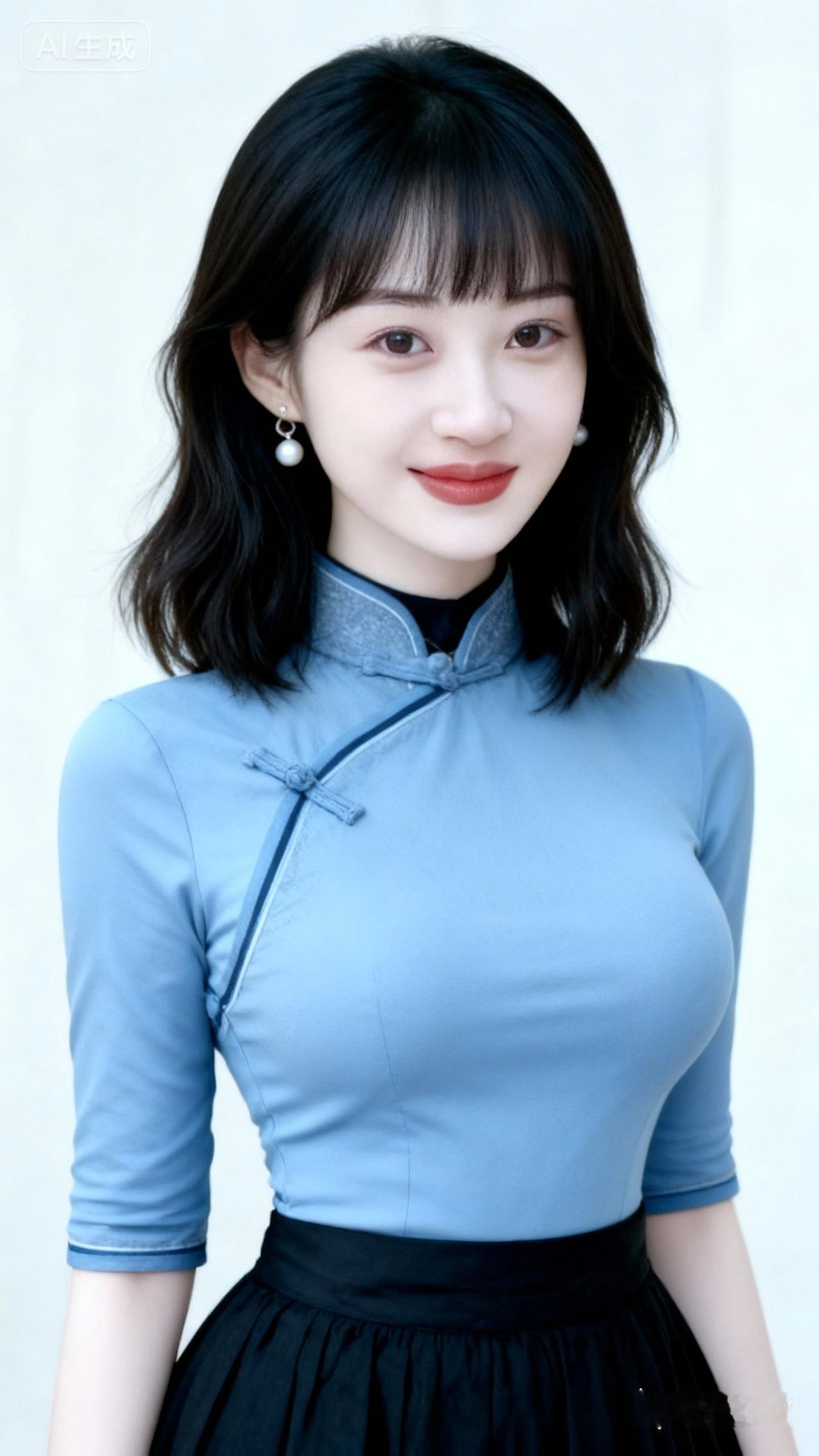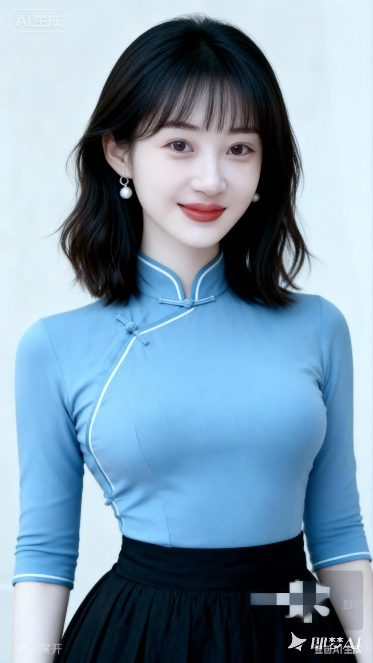 优雅蓝裙,气质满满,尽显东方韵味!