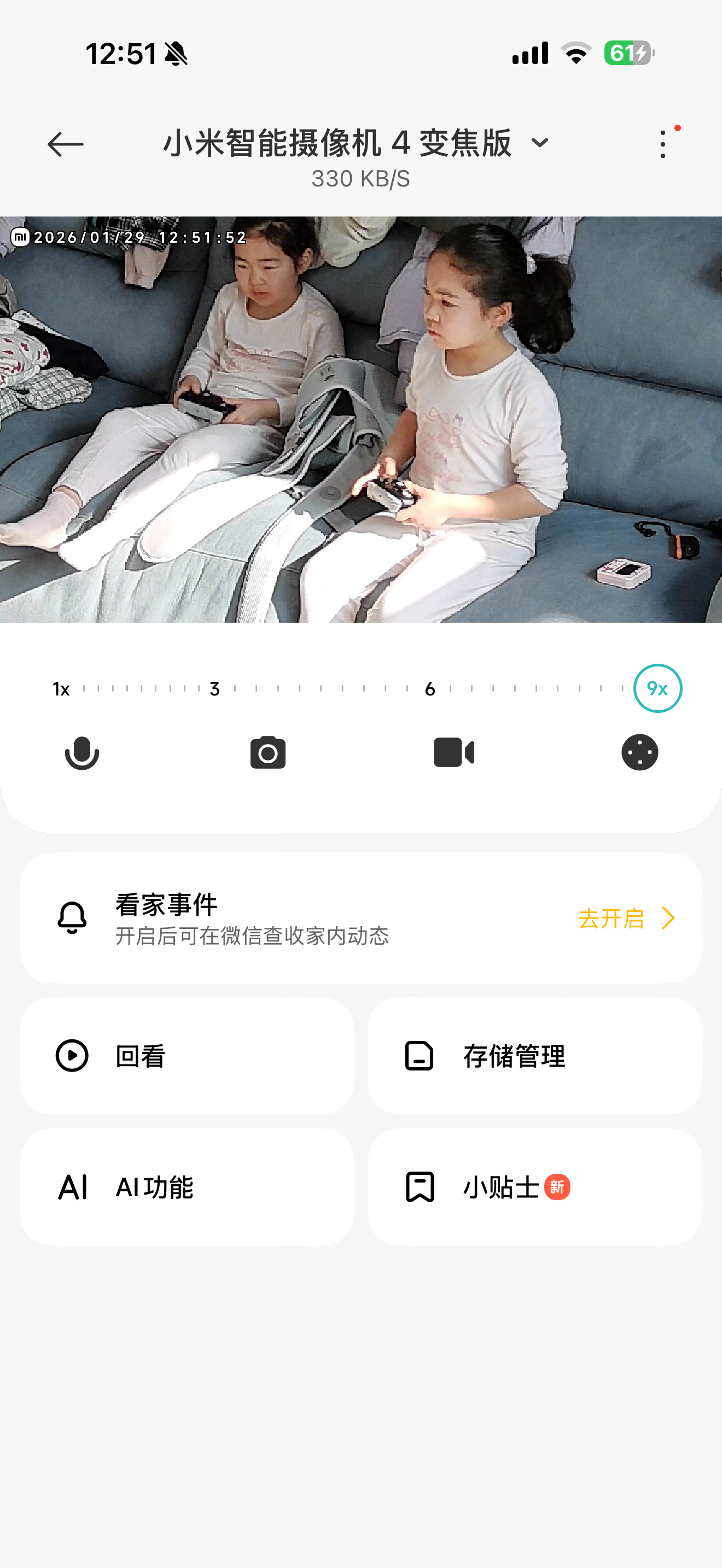 作为米家全家桶用户,在小米科技年货节 给大家推荐几个最近最高频使用的新产品。由于多了个老三,监控需求更高频了,得实时看娃的睡眠和哭闹情况,所以把摄像头和监控屏都升级了。转发抽一个小米手环10。【小米智能家庭屏11】出了新款才知道,原来我一直在用的智能家庭屏10是4年前的产品了,放一起对比反差很明显,屏幕更大了,体积、厚度和重量都小了超级多,而且性能也提升了,切换监控摄像头时非常流畅。这个家庭屏是个智能中枢,有小爱同学音箱功能,也能爱奇艺看视频,最重要的是集成米家,可以控制一切。我用的最多的就是看监控,玩电脑的时候开着摄像头,打开音量,随时准备带娃。【小米智能摄像机4变焦版】800W+500W双摄,广角4K分辨率,1x-9x平滑变焦,放大后清晰度大增,加上云台更大的转角(水平360度+垂直180度),可以锁定在娃所在的位置看得更清楚。变焦版和双摄版虽然都是两个摄像头,但用途是不一样的,双摄的两个摄像头可以朝向不同的位置,主要为了扩大监控面,我客厅有个C500双摄版,虽然长焦也能放大更清楚一些,但它是两个独立的画面,切换麻烦些,也没有做无缝衔接的多倍放大功能。而变焦版是为了局部看得更清楚,如果空间没那么大的话,其实单摄版摄像头放墙角90度视角就能看清屋里全貌了,双摄版的平滑变焦局部放大更清晰更实用。【小米智能门锁M40 Pro】我两个入户门用的分别是小米智能门锁X和M20 Pro这两款智能锁,三年前装修时买的,成年人用没任何问题,但对老人小孩确实不够友好,孩子身高不够人脸识别覆盖不到,孩子的指纹太细而且还在成长,时灵时不灵的,老人指纹磨损严重也不太灵,所以老人孩子用最多的还是密码。现在M40 Pro解决了这个痛点,搭载了掌静脉识别技术,隔空刷掌就能秒开锁,太方便了。当然人脸识别技术也升级了,3D结构光精度和光感都提升,暗光也能快速解锁。还有AI双摄猫眼功能,推荐老智能锁用户升级。高智感的家会更好