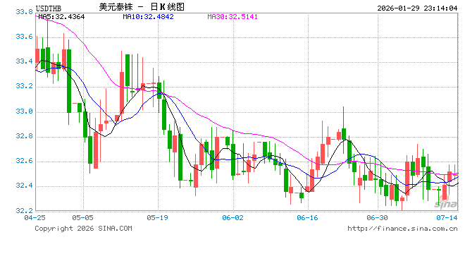 新浪外汇消息2026年01月29日,截至23时13分,外汇市场上美元兑泰铢汇率突破1美元兑换31.3600泰铢。涨幅为1.0309%
