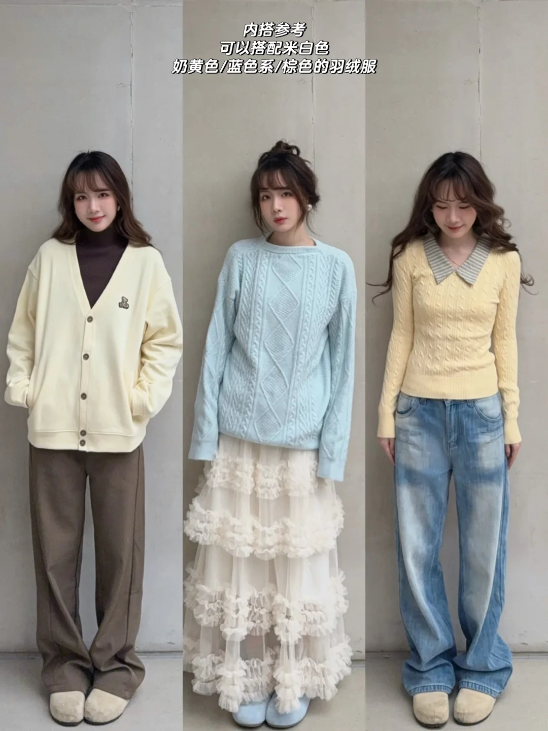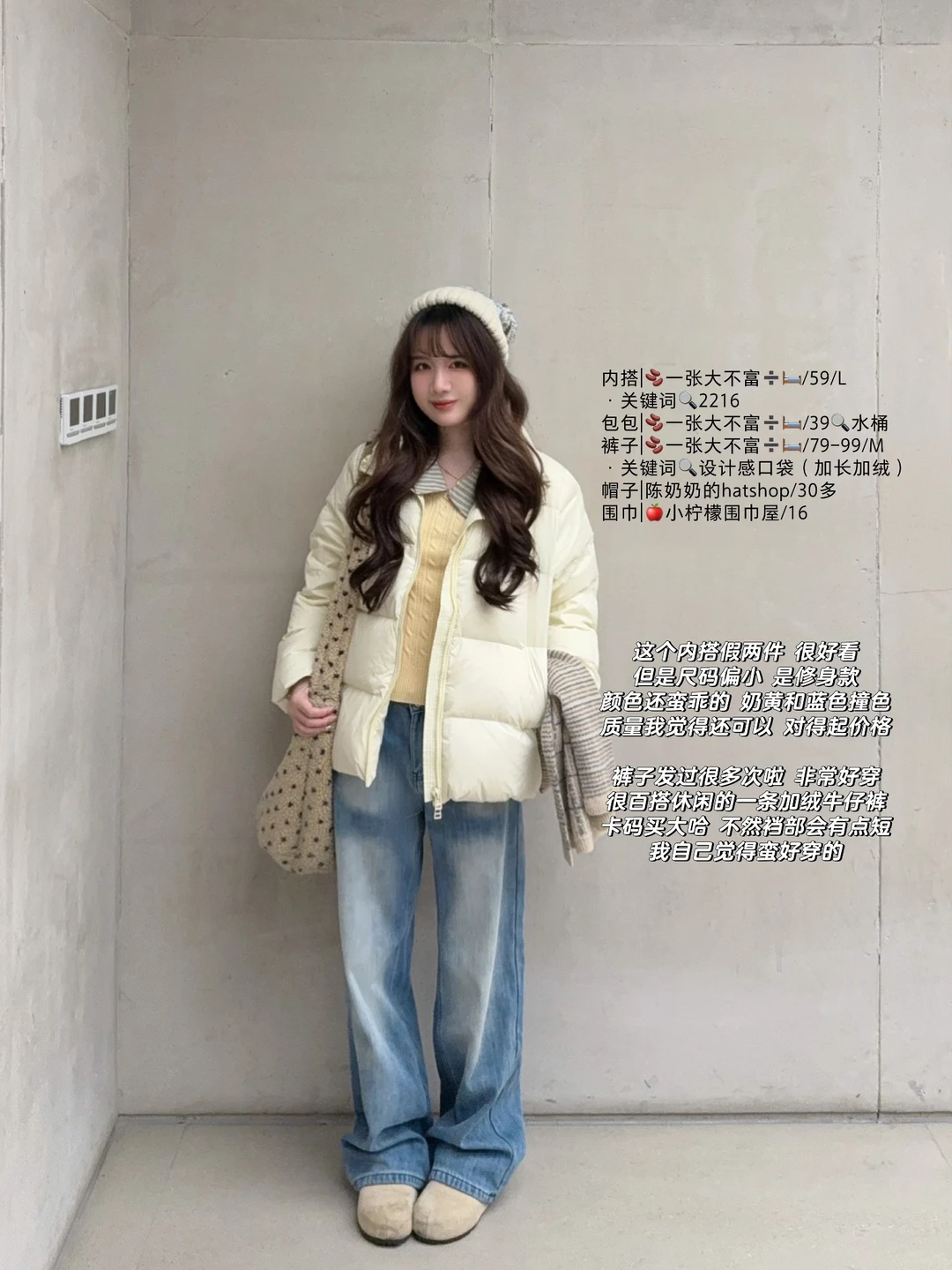 米黄色羽绒服穿搭✖️5🧺˚⁎⁺平价且真羽绒服~