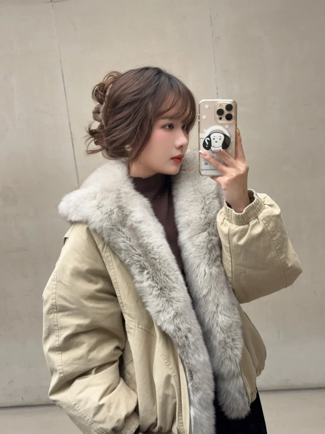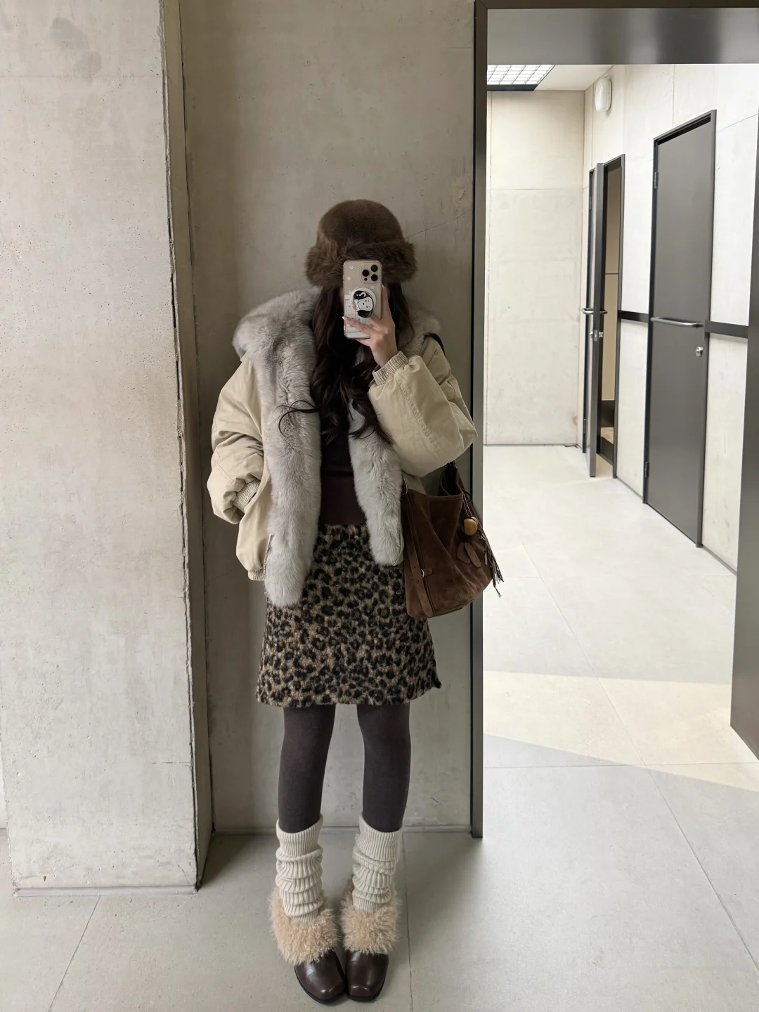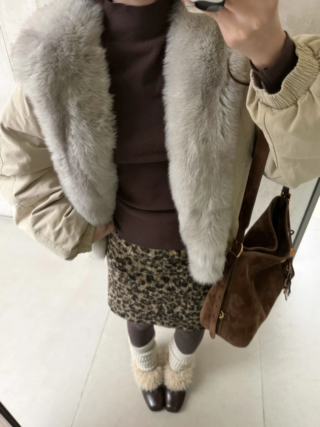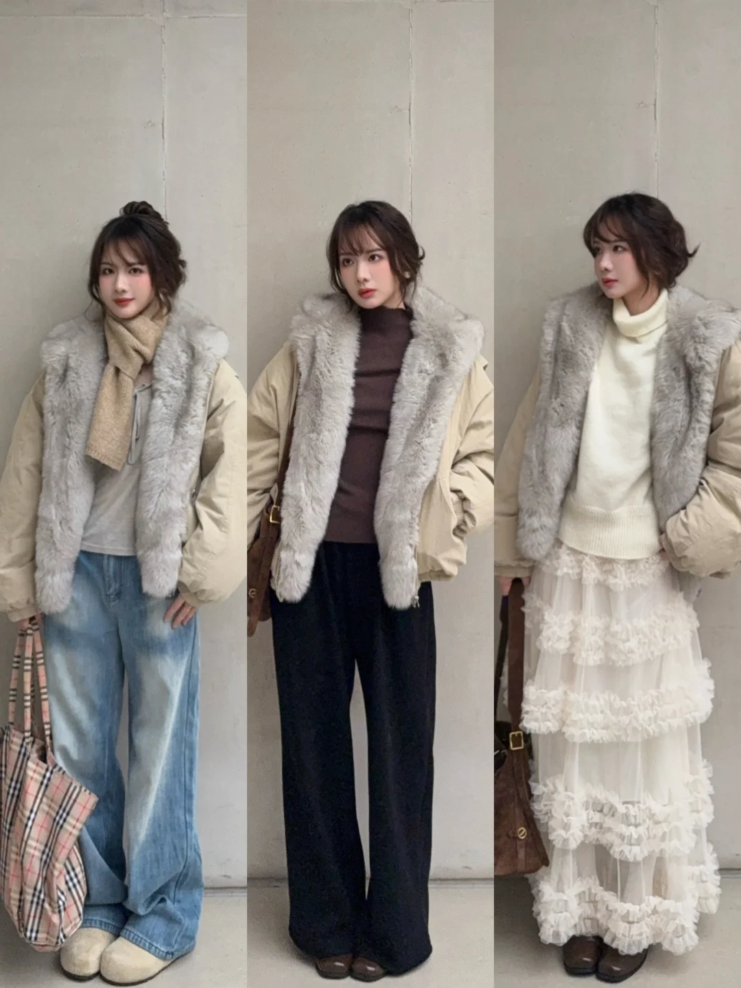 有类似颜色的皮草外套 或者毛毛外套都可以参考哦