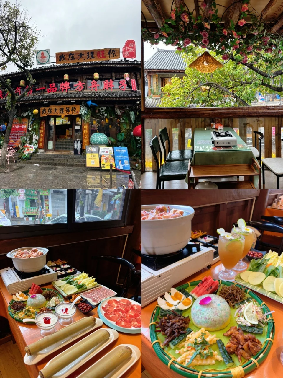 🍄方舟胖子厨房·野生菌头牌·手抓饭:开了10年的云南大理野生菌火锅,野生菌火锅汤底挺鲜的,傣味手抓饭分量很实在,大理三宝鸡辣的嘶哈嘶哈也停不下来,傣味泡鲁达椰香浓郁,很清爽!