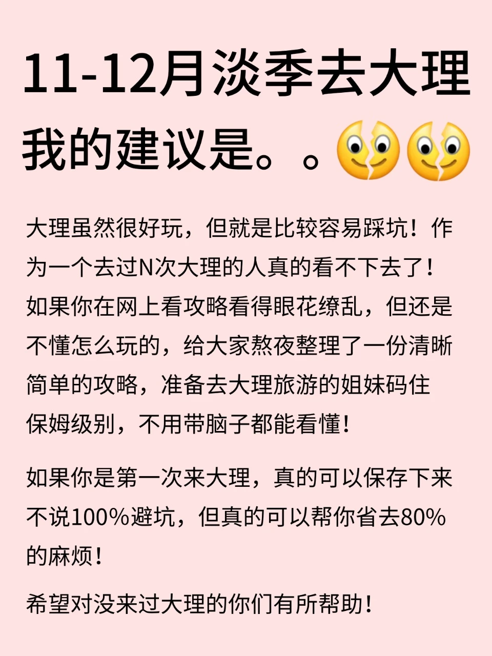 刚从大理旅游回来,真的踩了好多坑!!近期要去大理的姐妹们做好攻略再来!!熬夜整理了这篇避坑建议,近期要去大理的姐妹👭一定要先看看💕