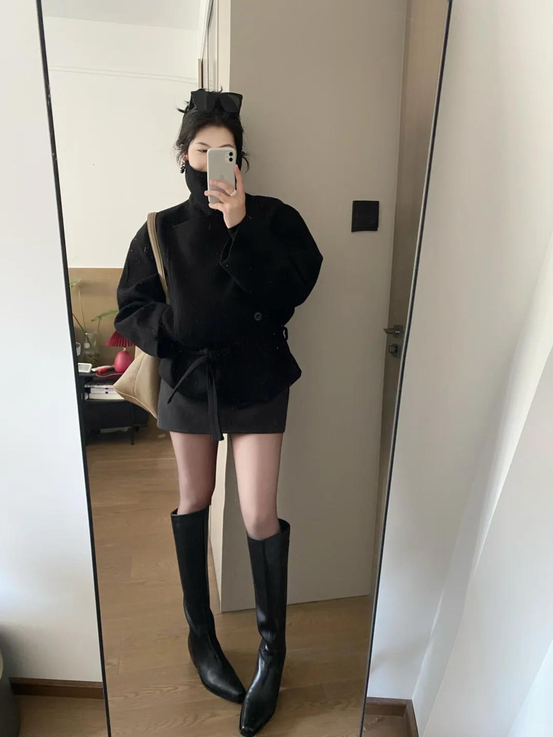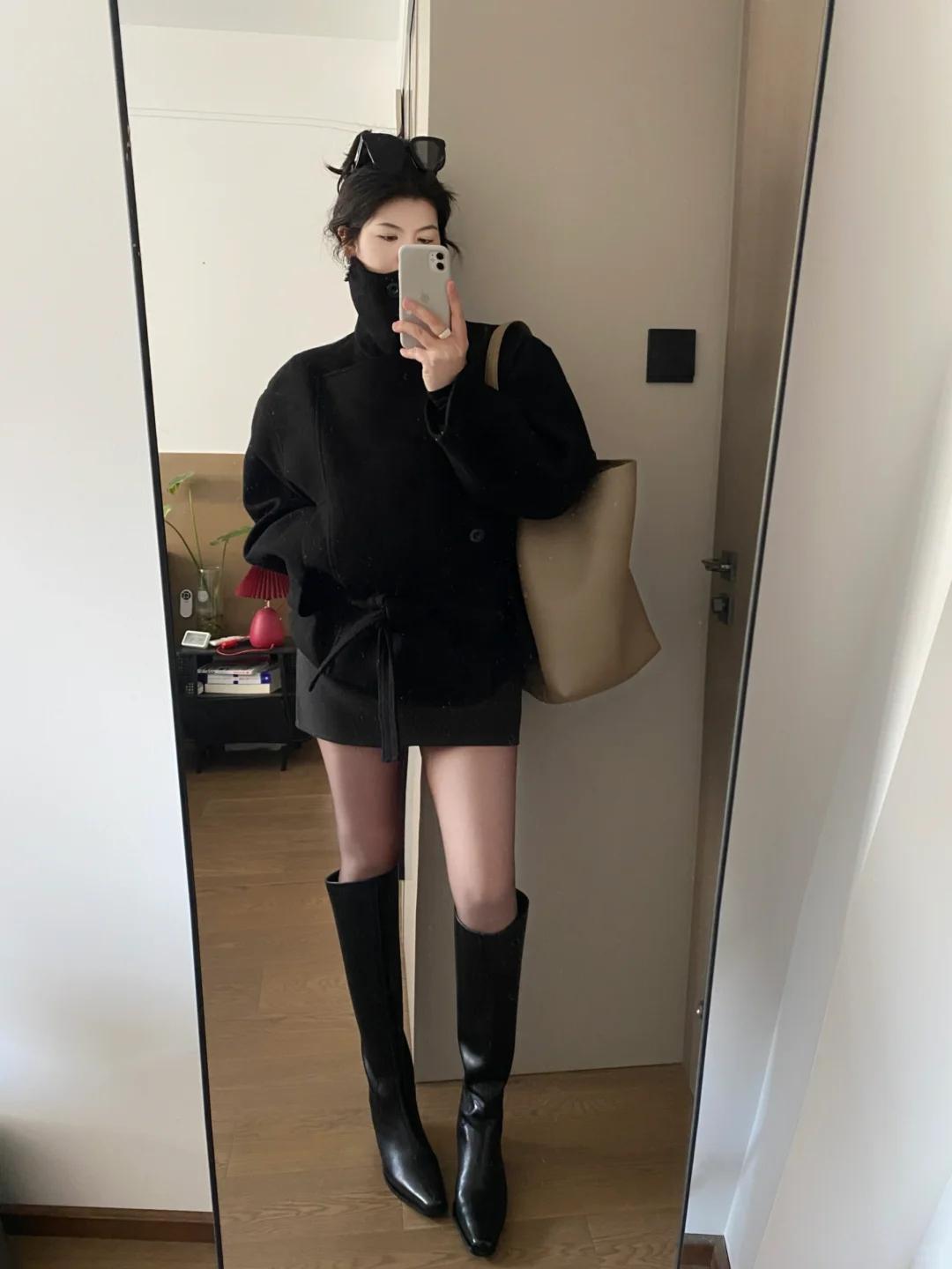 这套穿搭是温柔利落的黑蓝秋日风,把松弛质感与精致细节融合。黑色开衫自带温柔松弛感