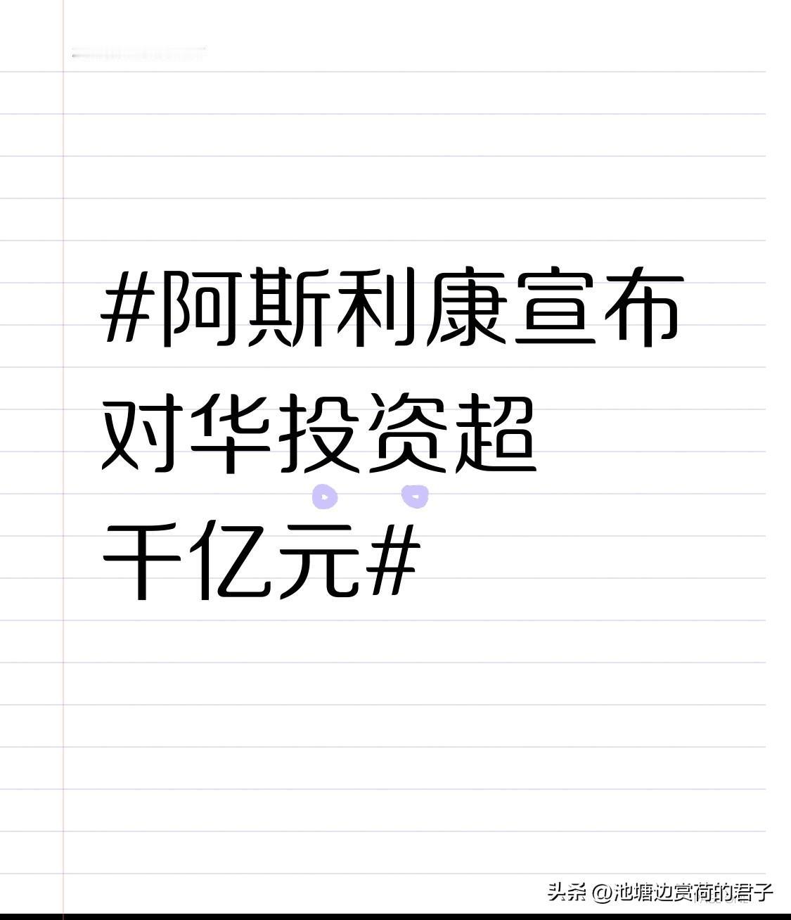 阿斯利康宣布对华投资超千亿元 阿斯利康宣布对华投资超千亿元,这可真是个大动作!这背后肯定是阿斯利康看到了中国市场的巨大潜力。中国有着庞大的人口基数,对医药的需求那是相当可观。而且这些年中国在医疗领域的发展也十分迅猛,政策环境也越来越有利于外资企业。 阿斯利康这么大的投资,说不定能给中国的医疗带来新的技术和产品。对咱老百姓来说,以后看病可能就有更多更好的选择。不过也得看看后续怎么落实,希望这笔投资能真正造福大家。