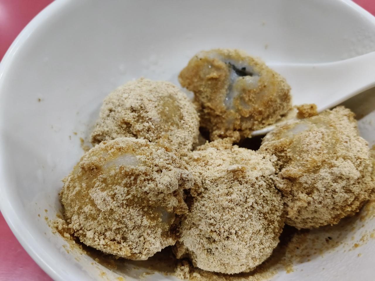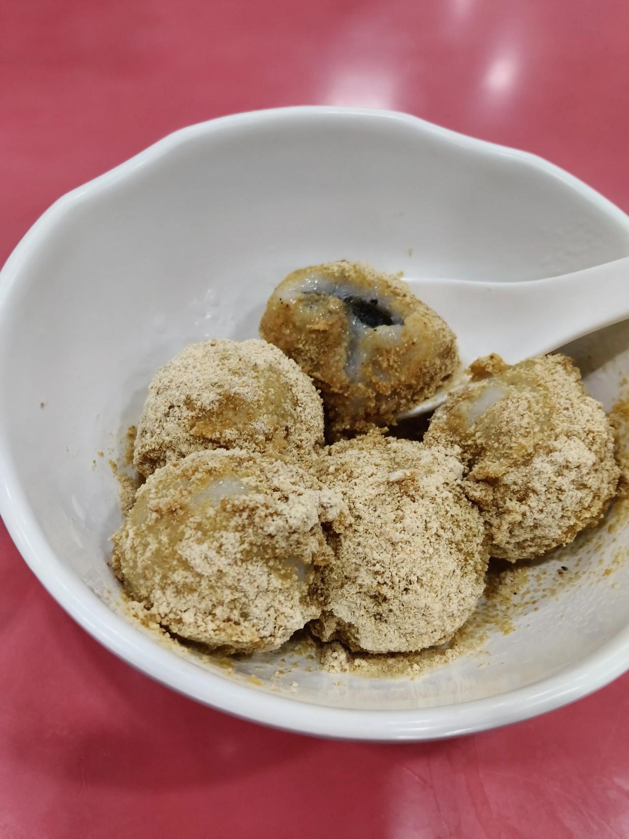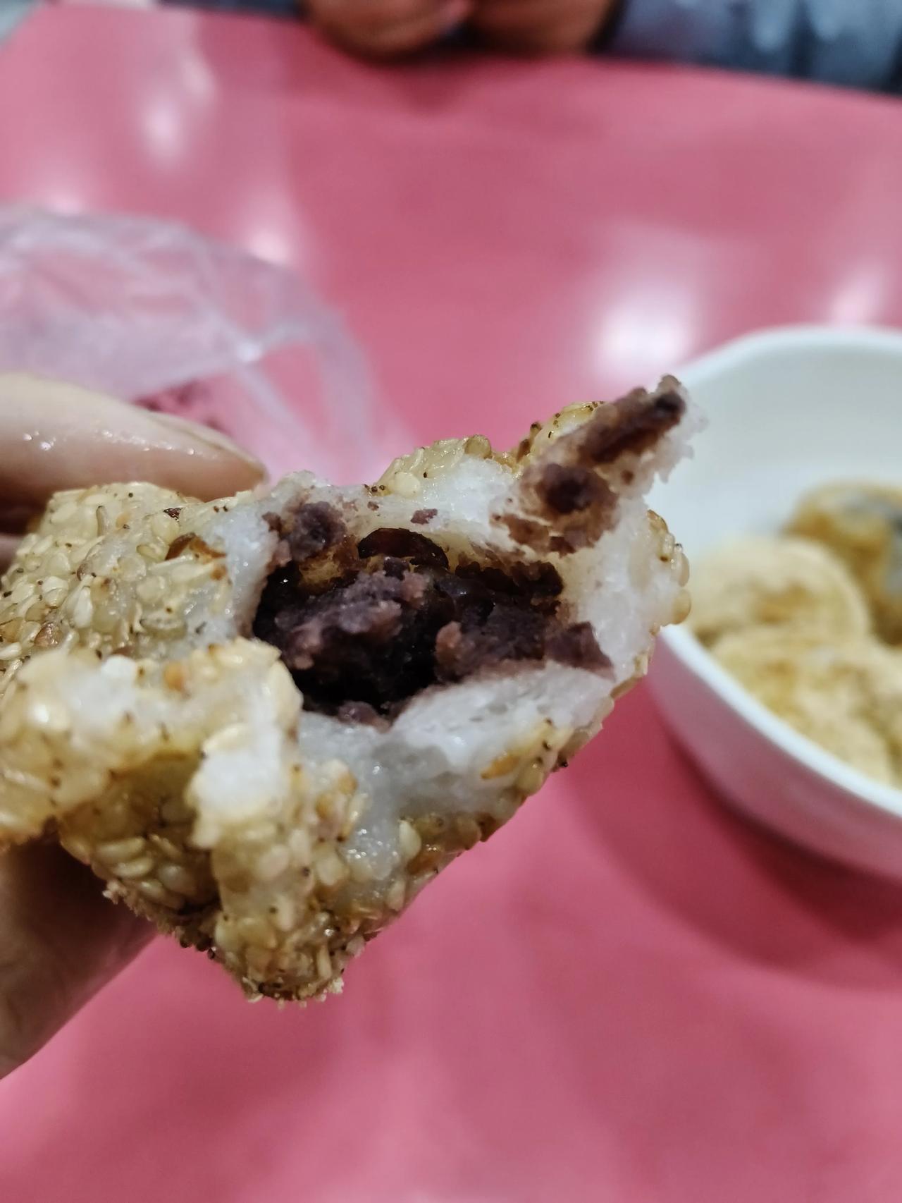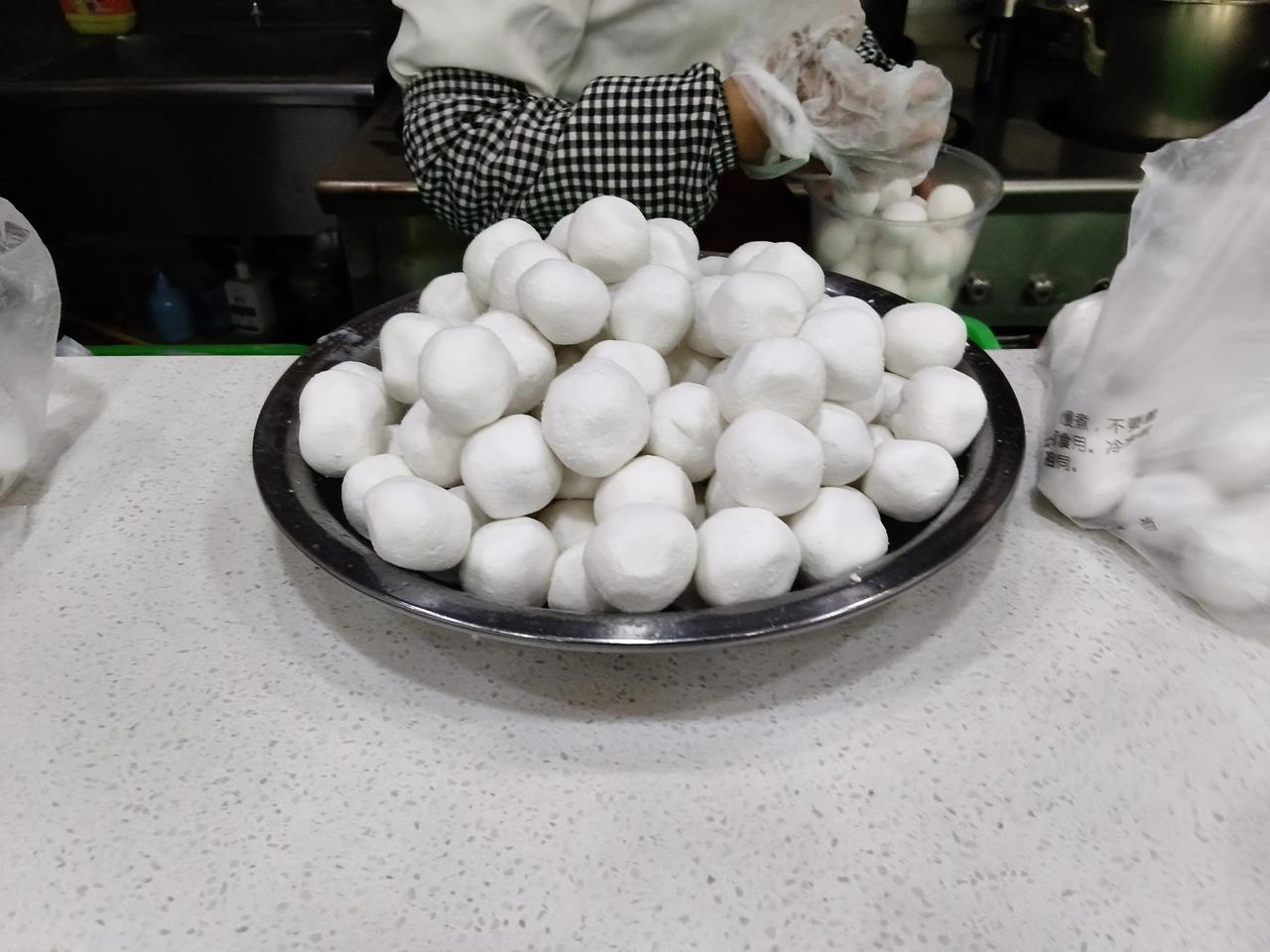 一个麻团3块钱,一碗元宵,6个7块钱。
