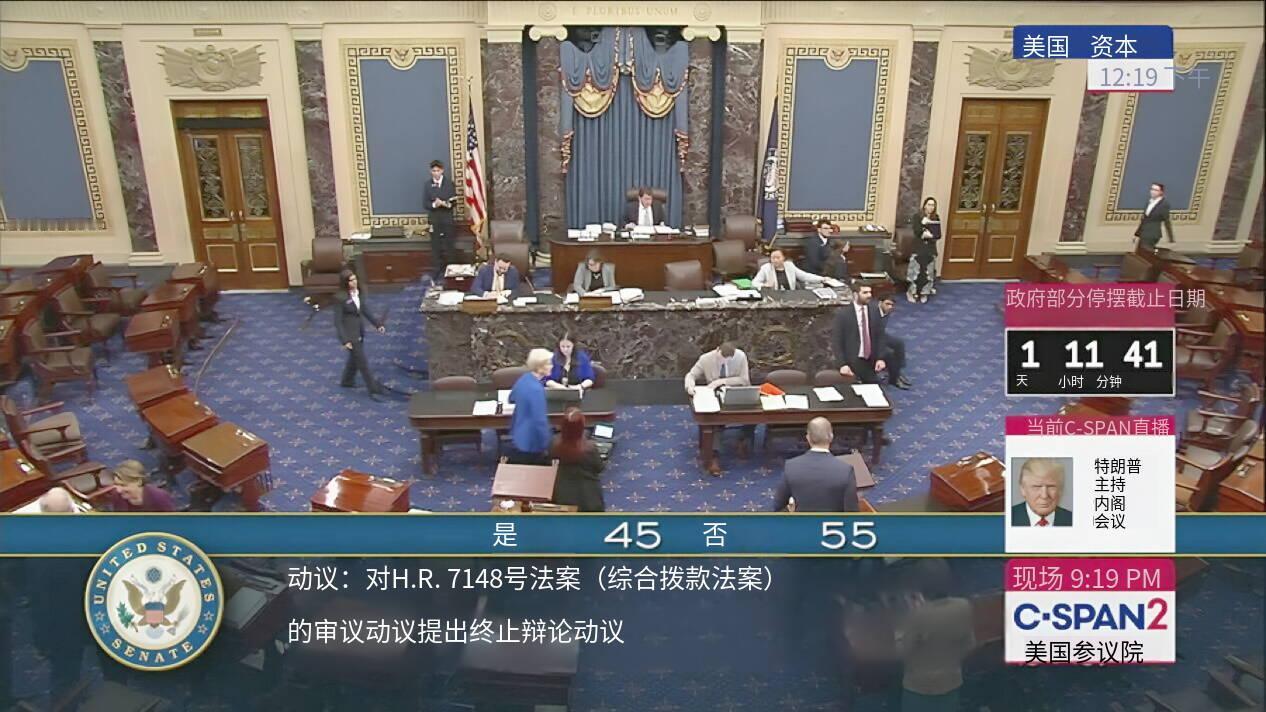 突发新闻——美国参议院以45票赞成、55票反对,未能推进用于避免政府部分停摆的拨
