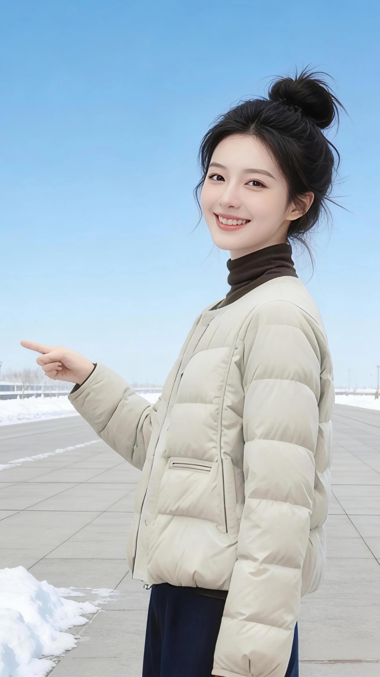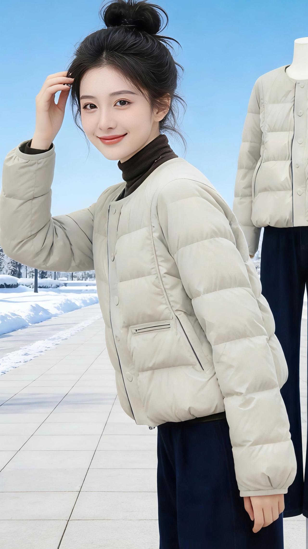 雪色里的暖 风掠过街角时,带着细碎的雪粒,落在浅米色羽绒服的面料上,很快就化在冬日的晴光里。她站在被雪水洗过的长街上,丸子头松松挽着,发梢沾着一点薄凉的水汽。 抬手拂过领口的动作轻得像拢住一团云,阳光穿过澄澈的蓝天,在羽绒服的菱格纹上跳成细碎的光斑。转身时衣料擦出轻响,和远处雪堆的反光一起,漫成温柔的弧度。 这是属于北方冬日的松弛感——冷意被蓬松的羽绒妥帖接住,笑容却比阳光更暖。她指尖轻轻勾住衣摆,像牵住了整个冬天的软,在雪色与晴空的交界线里,站成一幅不用调色的画。 高级感穿搭 冬季穿搭 新年穿搭 棉服外套