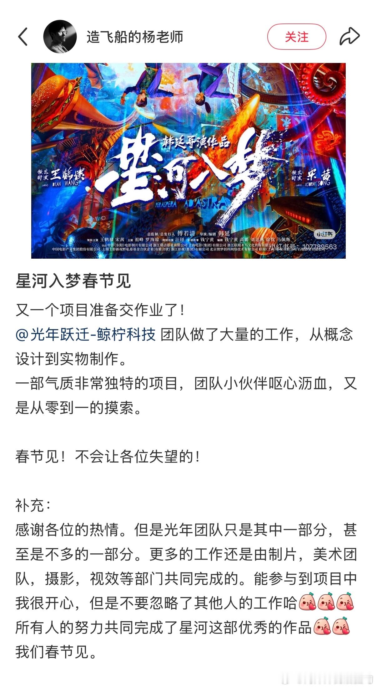 春节档王鹤棣主演的《星河入梦》,有《流浪地球》的团队参与哎而且是部分概念设计以及