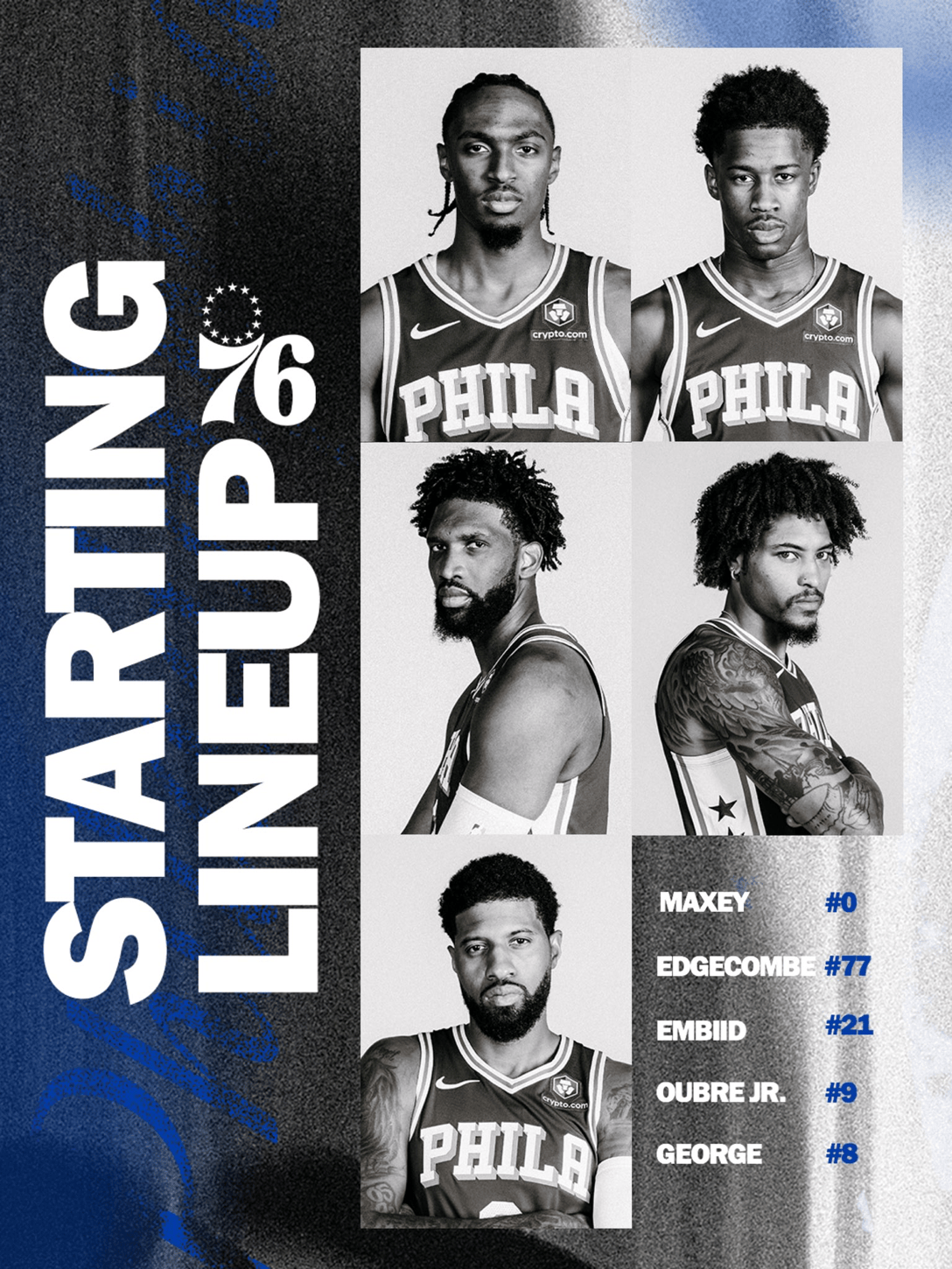 76人首发:马克西、埃奇库姆、保罗-乔治、乌布雷、恩比德