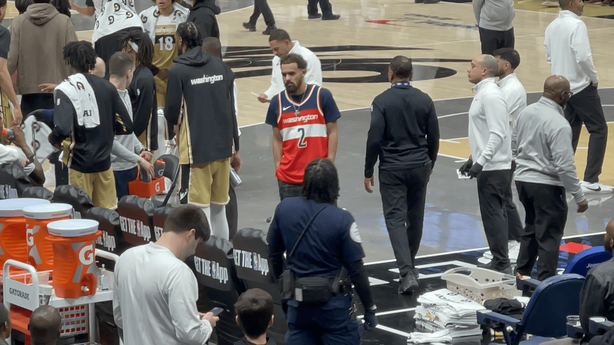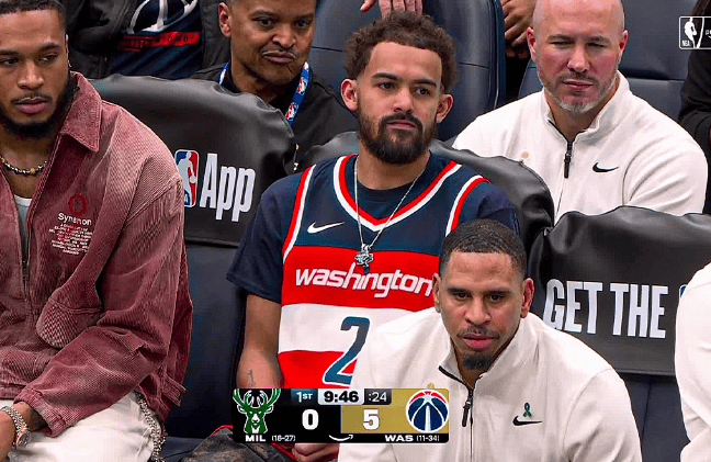 致敬奇才传奇!特雷-杨今日身穿约翰-沃尔2号球衣场边观战