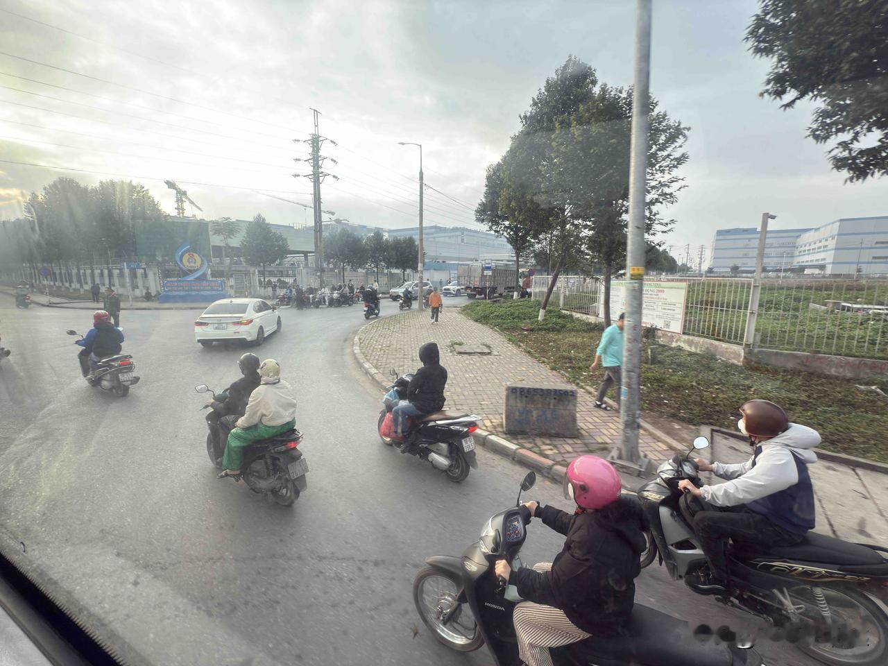 越南交通工具 看上下班大队 一目了然 员工以摩托车 作为交通工具 有部分管理 或技术工程师 现以小车为主 以我团队来说 七年前越南籍一辆小车都没有 现在买了小汽有14人 团队共63人 因为每次有人买车 需要找我申请进入停车场资格 所以有人买小车 我会第一时间知道 今年又有几个越南女孩也准备买小车了 让我派她们去墨西哥出差半年 回来就买车 一天60美刀 对于她们来说 收入可以的