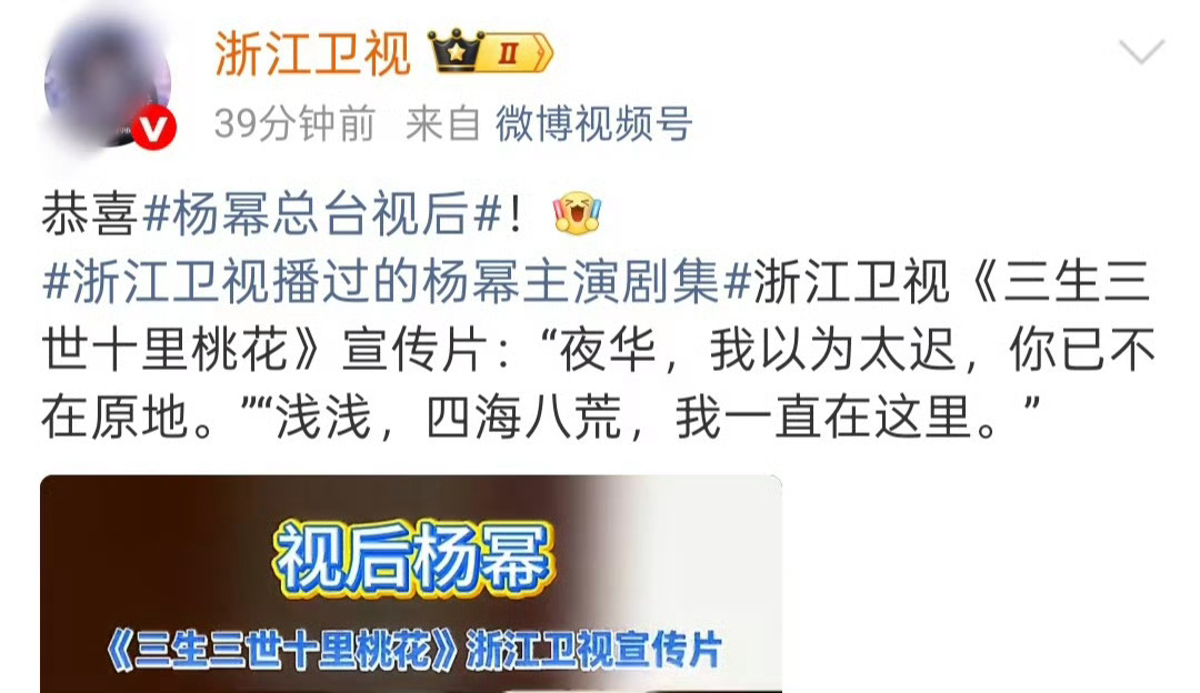 浙江卫视发文祝贺杨幂拿下总台视后浙江卫视恭喜杨幂总台视后 浙江卫视恭喜杨幂总台视