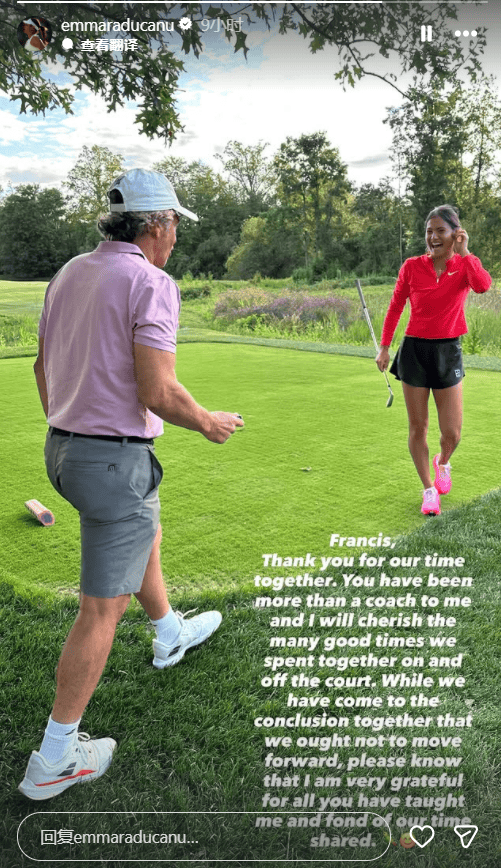拉杜卡努在社媒中写道:弗朗西斯科,感谢我们共同合作的时光。你对我来说不仅仅是一位教练,我会珍惜我们在场上和场下共度的许多美好时光。虽然我们共同得出结论认为不应继续合作,但请你知道,我非常感激你教会我的一切,并珍惜我们共事的时光。