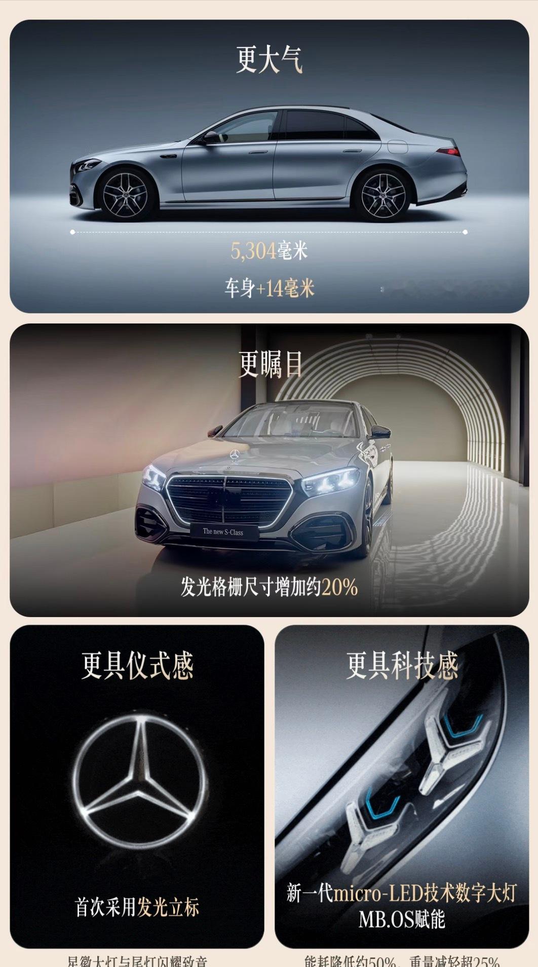 现款S级的前脸终于看习惯了,又改了,新一代S级轿车好看吗?前脸没那么优雅了,格栅整那一圈灯条真是难绷,内饰没太大变化,切换横屏、还有了副驾屏幕。还有那个智能底盘记忆功能,跟蔚来的舒适领航,说的是一个意思吧