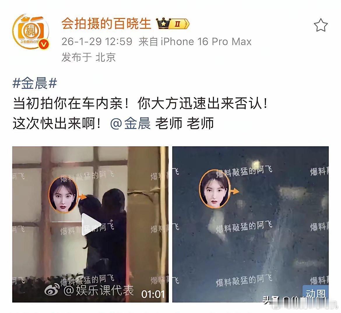1月29日,金晨迟迟不回应,娱记贴脸开大,喊话金晨,“当初拍你在车内亲!你大方迅速出来否认!这次快出来啊!”,见金晨还是不回应,又开始发金晨的待播剧明细!今天娱记是不是拿来什么一定要金晨回应他们的KPI?他们这种行为已经不能称之为一次普通的发料,而是针对性的,难道金晨一定要封了,让她演艺生涯就此结束才甘心么?就因为她工作室太抠门?跟娱记没谈拢就这样?未免也太过了些吧!