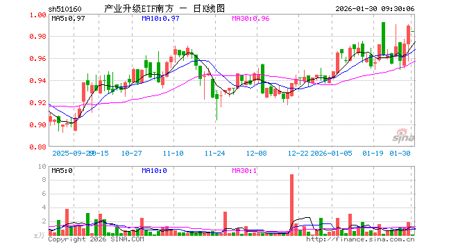 1月30日,产业升级ETF南方(510160)开盘跌0.51%,报0.984元。产业升级ETF南方(510160)重仓股方面,中国联通开盘跌0.58%,上汽集团跌0.14%,中国建筑跌0.40%,宝钢股份跌1.09%,万华化学跌0.73%,伊利股份跌0.48%,中国铝业跌6.37%,陕西煤业涨0.27%,中国中铁跌1.53%,海螺水泥跌0.97%。