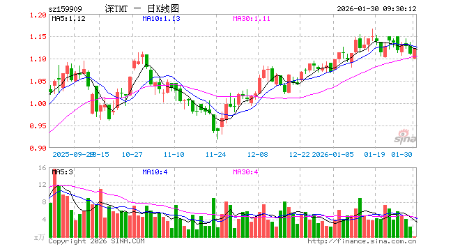 1月30日,TMT50ETF(159909)开盘跌0.99%,报1.099元。TMT50ETF(159909)重仓股方面,中际旭创开盘涨0.38%,新易盛跌1.15%,立讯精密跌0.54%,北方华创跌0.62%,胜宏科技跌0.66%,京东方A跌0.45%,中兴通讯跌1.29%,海康威视跌0.68%,东山精密跌2.21%,沪电股份跌1.16%。