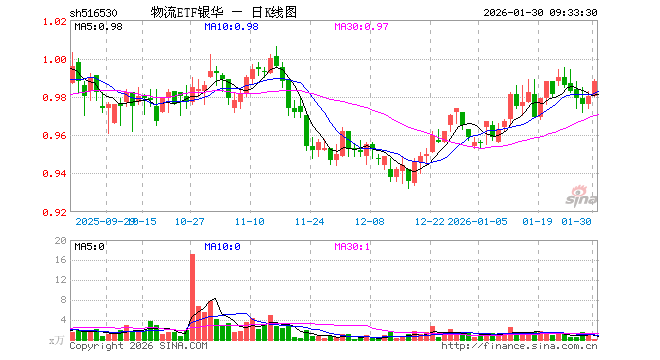 物流快递ETF(516530)业绩比较基准为中证现代物流指数收益率,管理人为银华基金管理股份有限公司,基金经理为谭跃峰,成立(2022-01-04)以来回报为-1.67%,近一个月回报为1.82%。