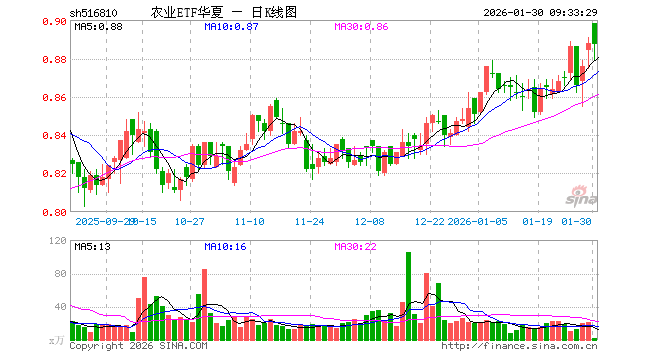 1月30日,农业ETF华夏(516810)开盘涨1.13%,报0.898元。农业ETF华夏(516810)重仓股方面,牧原股份开盘跌0.50%,温氏股份跌0.32%,海大集团跌0.50%,藏格矿业跌2.53%,盐湖股份跌1.75%,亚钾国际跌1.06%,正邦科技涨0.30%,新希望跌0.45%,梅花生物涨0.00%,扬农化工跌0.23%。