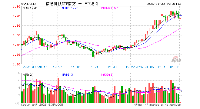 1月30日,信息科技ETF南方(512330)开盘跌0.89%,报1.665元。信息科技ETF南方(512330)重仓股方面,信维通信开盘涨2.37%,通富微电跌1.67%,长川科技跌0.94%,长盈精密跌0.81%,华虹公司跌0.92%,拓维信息跌1.10%,江波龙跌3.01%,协创数据涨0.35%,润和软件跌0.93%,佰维存储涨1.62%。