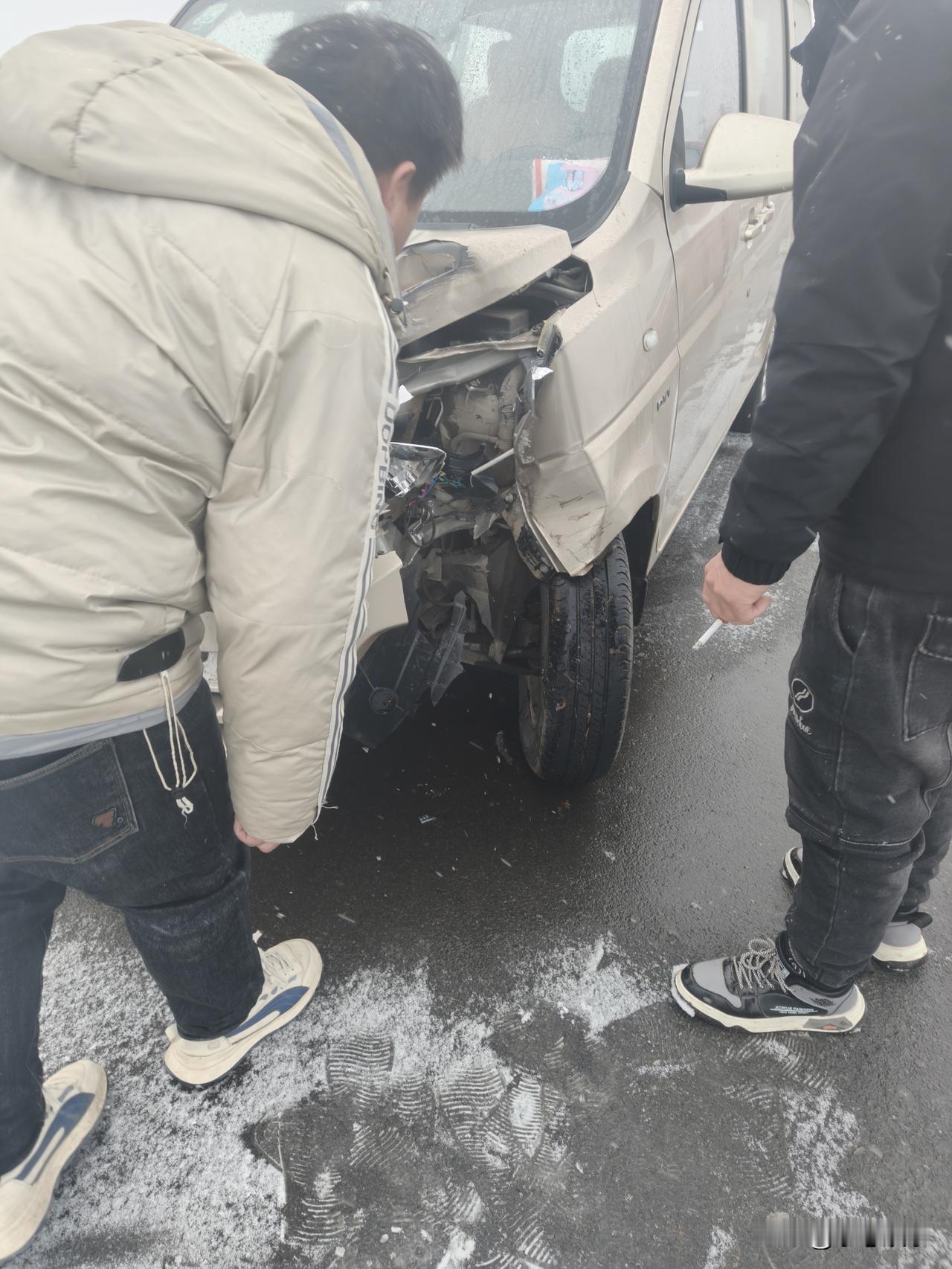 下雪天气注意安全,踩刹车蒙了,对锌干了,辛好是全险,人没事,等保险公司来拖车。