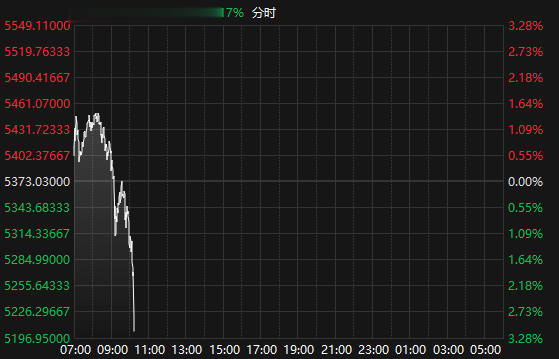 上证报中国证券网讯据Choice数据,1月30日,国际现货黄金高位震荡,截至10:14报5202.74美元/盎司,日内跌超3%。