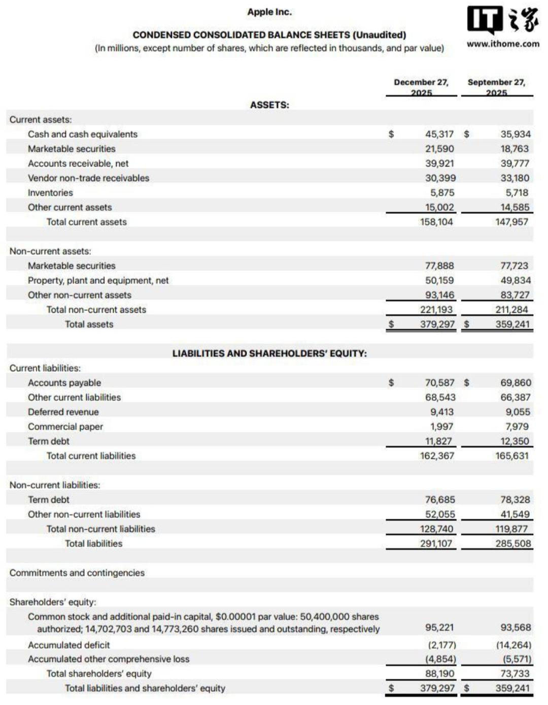苹果公司在2026年第一财季创造了惊人的1438亿美元营收,刷新了历史记录,这一成绩让市场为之震惊。 苹果公司在2026年第一财季交出了一份亮眼的成绩单,总营收达到1438亿美元,同比增长16%,远超市场预期的1384亿美元。这一成绩不仅再次证明了苹果公司的强大实力,也标志着其在移动设备市场的主导地位依旧稳固。财报显示,iPhone在本季度取得了显著增长,收入达到了852.7亿美元,同比增长23%,创下了历史新高。与此同时,Mac、iPad以及可穿戴设备、家居与配件等其他产品线也表现强劲,分别实现了83.9亿美元、86.0亿美元和114.9亿美元的收入。此外,苹果的现金及现金等价物增加了50%,达到453.2亿美元,显示出其良好的财务状况。此次财报还提到,苹果在全球范围内的活跃设备数量已超过25亿台,进一步巩固了其在全球市场的领先地位。