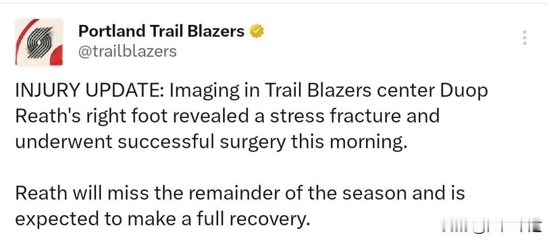 开拓者中锋杜普里斯赛季报销,杨翰森打发展联盟的机会将越来越少! 这也侧向的给中国球员杨翰森敲响警钟! 在开拓者这种以跑轰为主的球队中,由于转换回合速率会很快,这是一种对球员很容易受伤的打法,特别是中锋球员,所以开拓者在中锋位置上屯了克林根,罗威,杨翰森和里斯四名中锋球员! 据开拓者官方消息宣布,里斯因右脚应力性骨折将要进行手术,已确定赛季报销! 里斯合同即将在今夏合同到期,姚明当年也是因为应力性骨折早早退役,未来前景充满未知!