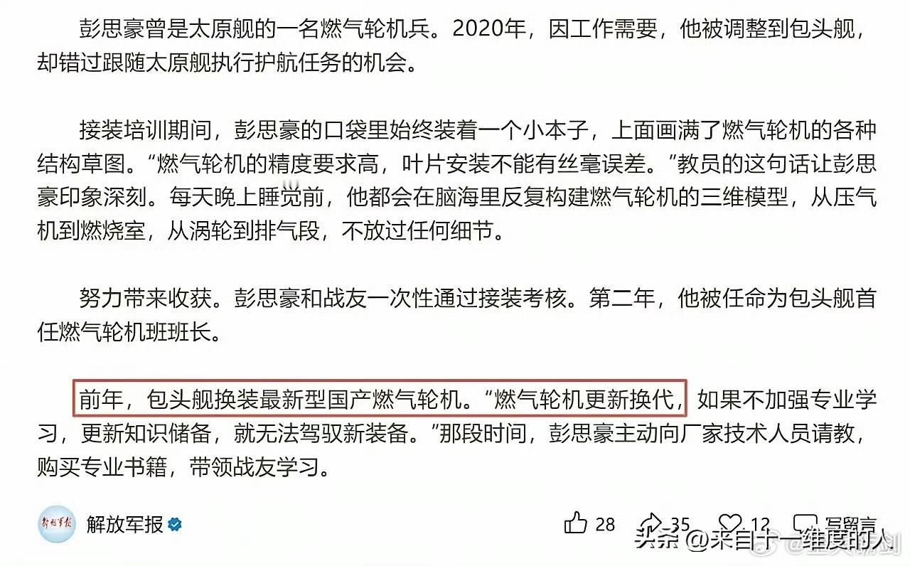 官方:052D型导弹驱逐舰133包头舰已更换新一代燃气轮机。 只是052D系列都是用的CGT-2500燃气轮机,新一代燃气轮机应该是CGT-30M吧!这是为了新9000吨通驱做测试准备吗? 按照公开报道,CGT-25M燃气轮机,额定功率26.7兆瓦,热效率36.5%。在2010年代,这属于解放军各种主力舰艇的标配。 不过,2024年,我国新一代的CGT-30系列、CGT-40系列燃气轮机,公开亮相。其中,CGT-30系列燃气轮机,额定功率33.5兆瓦,热效率39.3%。 国产CGT-40系列燃气轮机,额定功率44兆瓦,热效率40.5%