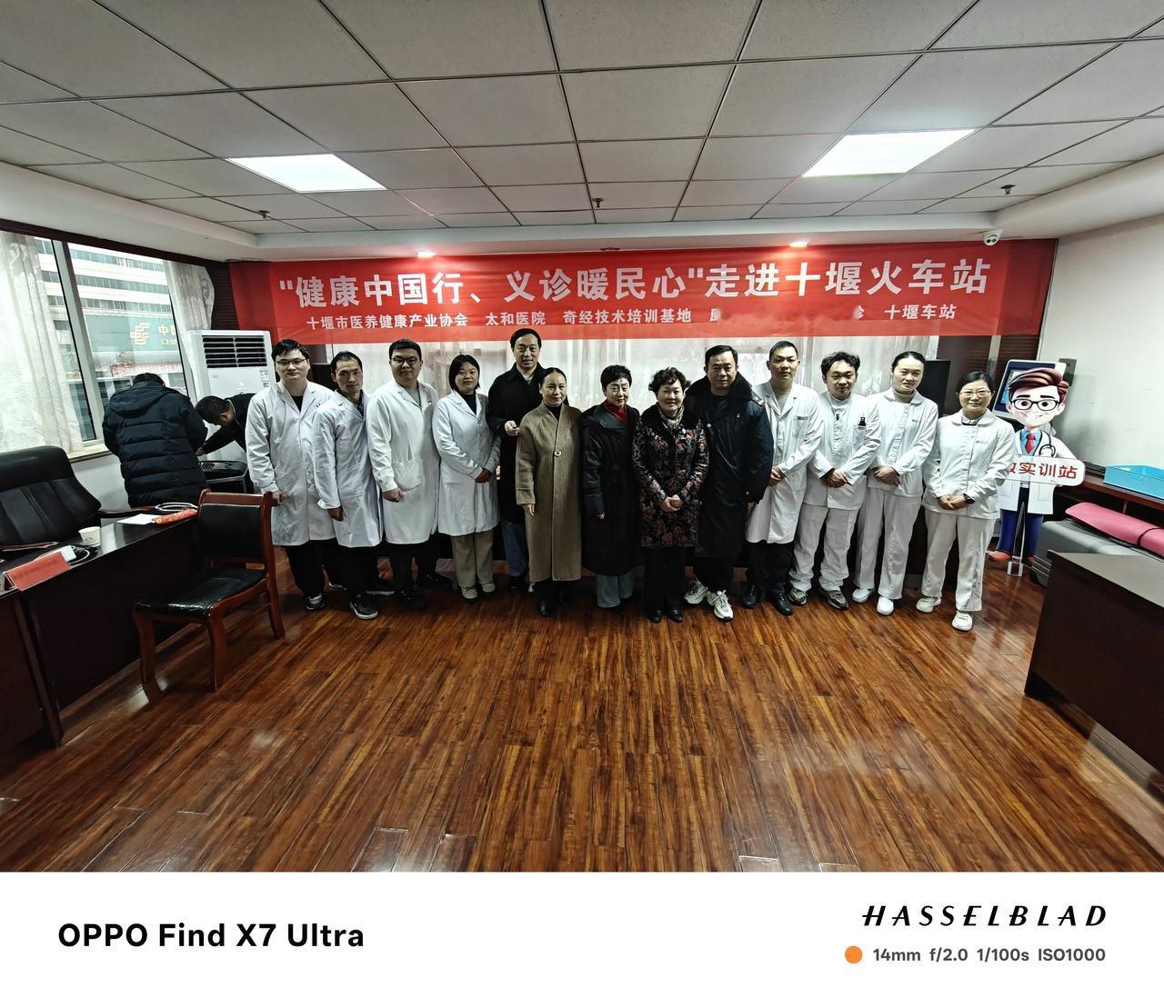 新春健康暖一线! 十堰医养协会义诊活动 首站走进火车站 今晨(1月30日),十堰市医养健康产业协会,新年义诊活动首站,走进十堰火车站。 协会联合太和医院健康管理部、康芪药业中西医门诊部、奇经技术十堰培训基地,组建医疗和健康专家团队,为铁路职工送上专属健康福利。 活动现场人气高涨,火车站站长练耀华,带领80余名铁路员工踊跃参与,围绕职业健康问题、向专家现场咨询问诊。 十堰市总工会原常务主席李馥秀、太和医院健康管理部部长杨廉洁,亲临现场指导。 协会会长王玉巧,为大家送上中草药眼罩、并致以暖心的新春祝福。 奇经培训基地张晓晨老师,带来实用的奇经养生健康讲座。 协会秘书长王玉刚、今日头条武当中医药工作室,全程参与并见证此次公益活动。 请用一句话概括一下,什么是幸福