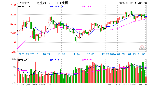 1月30日,截止午间收盘,创业板ETF华夏(159957)涨0.79%,报2.180元,成交额7049.05万元。创业板ETF华夏(159957)重仓股方面,宁德时代截止午盘涨2.93%,中际旭创涨4.07%,新易盛涨4.40%,东方财富跌1.73%,阳光电源涨3.30%,胜宏科技涨2.25%,汇川技术跌1.42%,迈瑞医疗跌1.49%,温氏股份涨0.90%,天孚通信涨11.92%。