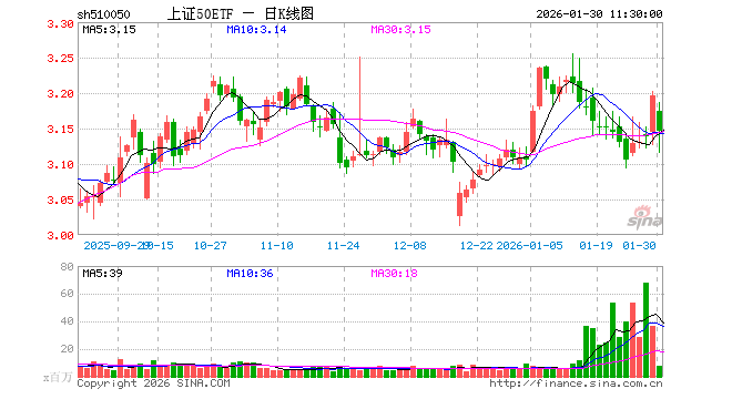 1月30日,截止午间收盘,上证50ETF(510050)跌1.56%,报3.146元,成交额25.00亿元。上证50ETF(510050)重仓股方面,贵州茅台截止午盘跌2.18%,中国平安跌1.81%,紫金矿业跌8.33%,招商银行涨0.65%,兴业银行跌0.21%,长江电力涨1.73%,寒武纪涨1.35%,中信证券跌0.88%,恒瑞医药涨0.29%,工商银行涨0.96%。