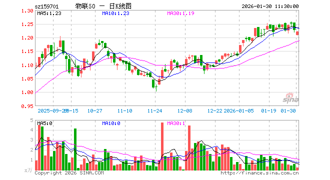 1月30日,截止午间收盘,物联网ETF招商(159701)跌0.49%,报1.220元,成交额25.94万元。物联网ETF招商(159701)重仓股方面,中际旭创截止午盘涨4.07%,立讯精密涨0.73%,汇川技术跌1.42%,兆易创新涨2.41%,美的集团涨0.95%,中兴通讯跌1.75%,科大讯飞跌2.48%,海康威视跌2.02%,豪威集团跌0.58%,海尔智家跌0.27%。