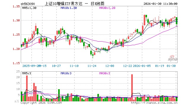 1月30日,截止午间收盘,上证50增强ETF易方达(563090)跌1.98%,报1.286元,成交额439.86万元。上证50增强ETF易方达(563090)重仓股方面,中国平安截止午盘跌1.81%,贵州茅台跌2.18%,沪电股份涨1.39%,药明康德跌1.84%,海尔智家跌0.27%,紫金矿业跌8.33%,国泰海通涨0.91%,中信证券跌0.88%,中国石油涨0.73%,豪威集团跌0.58%。