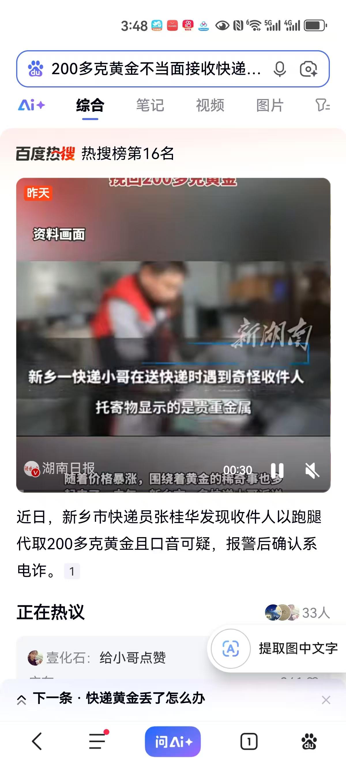近日,河南新乡发生了一起不仅惊心动魄,更极具警示意味的事件。这起事件的起因看似寻常,只是一单普通的快递揽收,却因为一位快递员的细心和负责,成功拦截了一起涉案金额巨大的电信网络诈骗案件。 故事的主角是新乡市的快递员张桂华。在像往常一样忙碌的工作中,他遇到了一个颇为奇怪的订单。收件人并没有亲自现身取件,而是通过“跑腿”的方式,要求代取一个包裹。这看似是如今快节奏生活中常见的便利服务,但当张桂华看到包裹内的物品时,职业敏感性瞬间被触动了。包裹里装的竟然是重达200多克的黄金。 要知道,在当前的物流和市场环境下,200多克黄金的价值不菲。更重要的是,这种贵重物品通常有着极其严格的流通和交易规范。普通个人交易,尤其是通过快递甚至跑腿代收的方式处理如此大量的黄金,极不符合常理。除了物品本身的异常,张桂华还敏锐地捕捉到了收件人方面的一些细节,特别是其口音显得颇为可疑。 这些零散的线索——高额价值物品、非本人接触、可疑的言语特征——在张桂华的脑海中迅速串联成了一张“风险网”。他没有选择为了业绩睁一只眼闭一只眼,也没有因为怕麻烦而敷衍了事,而是果断选择了报警。 警方的介入证实了张桂华的判断。经调查,确认这正是电信诈骗分子的一种新型洗钱或转移赃款的手法。在这类骗局中,诈骗分子诱骗受害人将钱款购买成黄金等硬通货,然后通过跑腿、快递等方式,在不引人注意的情况下将赃物转移,以此逃避银行账户的监管和警方的追踪。如果不是张桂华在第一时间发现端倪并报警,这200多克黄金恐怕早已落入骗子手中,受害者的损失也将难以挽回。 这件事在网络上引发了热议,无数网友为张桂华点赞,称他是“快递小哥上大分”、“警惕性够高”。这不仅是对张桂华个人的褒奖,更是社会对这种高度责任感的渴求。 这件事其实给所有人都上了一课。对于快递员和跑腿行业从业者来说,张桂华的行为树立了一个标杆。在追求配送效率的同时,保持对异常情况的敏感度,守住物流寄递的安全防线,是每一位从业者应尽的义务。很多电诈、走私等非法活动,往往就是试图利用物流的便捷来掩盖其非法本质。一个多留心眼的询问,一次及时的报警,可能就能挽救一个家庭的积蓄。 对于普通大众而言,这也是一个深刻的反诈提醒。骗子的话术和手段在不断翻新,从直接转账到购买黄金、虚拟币,再到现在的利用跑腿转移赃物,隐蔽性越来越强。我们要时刻警惕,凡是涉及将大额资金转换为实物,特别是黄金等贵重金属,并要求通过非正规渠道交收的,基本上都是诈骗的陷阱。 在新乡这座城市,张桂华用他的细心和正义感,守住了一道防线。200多克黄金,不仅是一笔巨额财富,更是骗子贪婪的铁证。好在,邪不压正,这次是正义跑赢了骗子。我们期待在物流行业能涌现出更多像张桂华这样的“有心人”,织就一张让骗子无处遁形的天罗地网。 以上内容仅供参考和借鉴