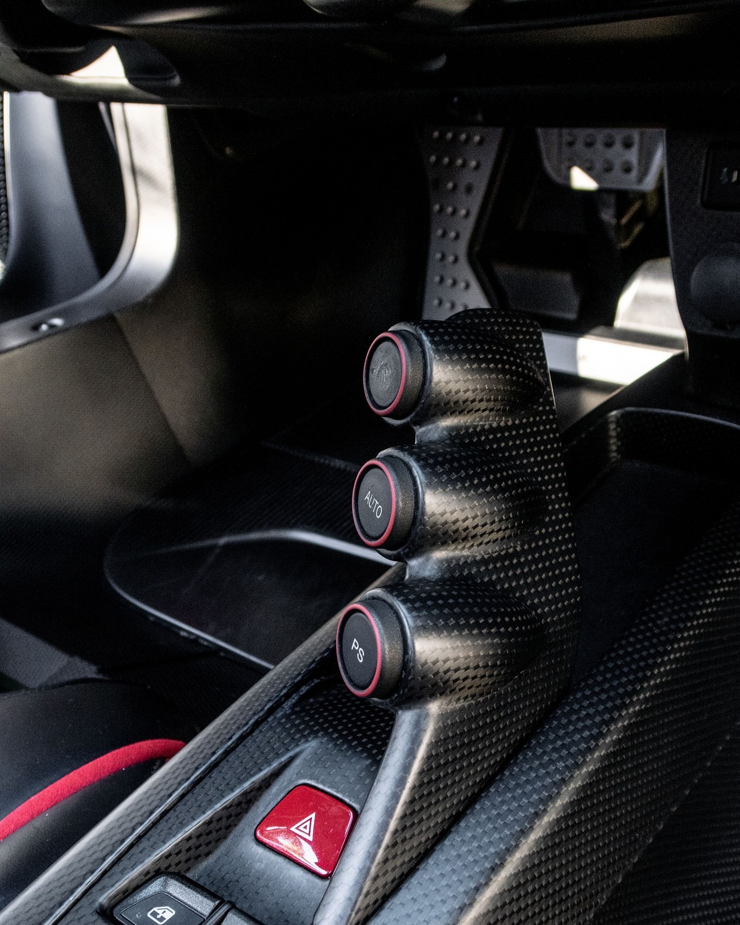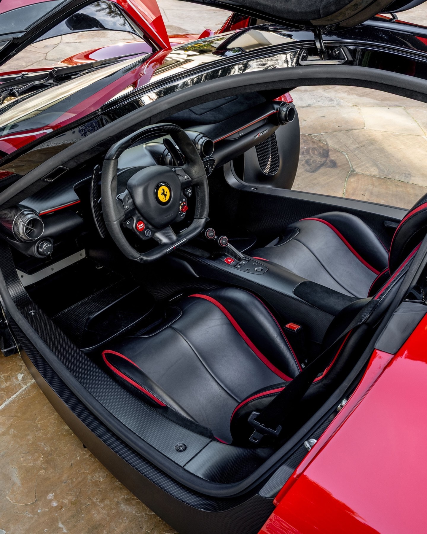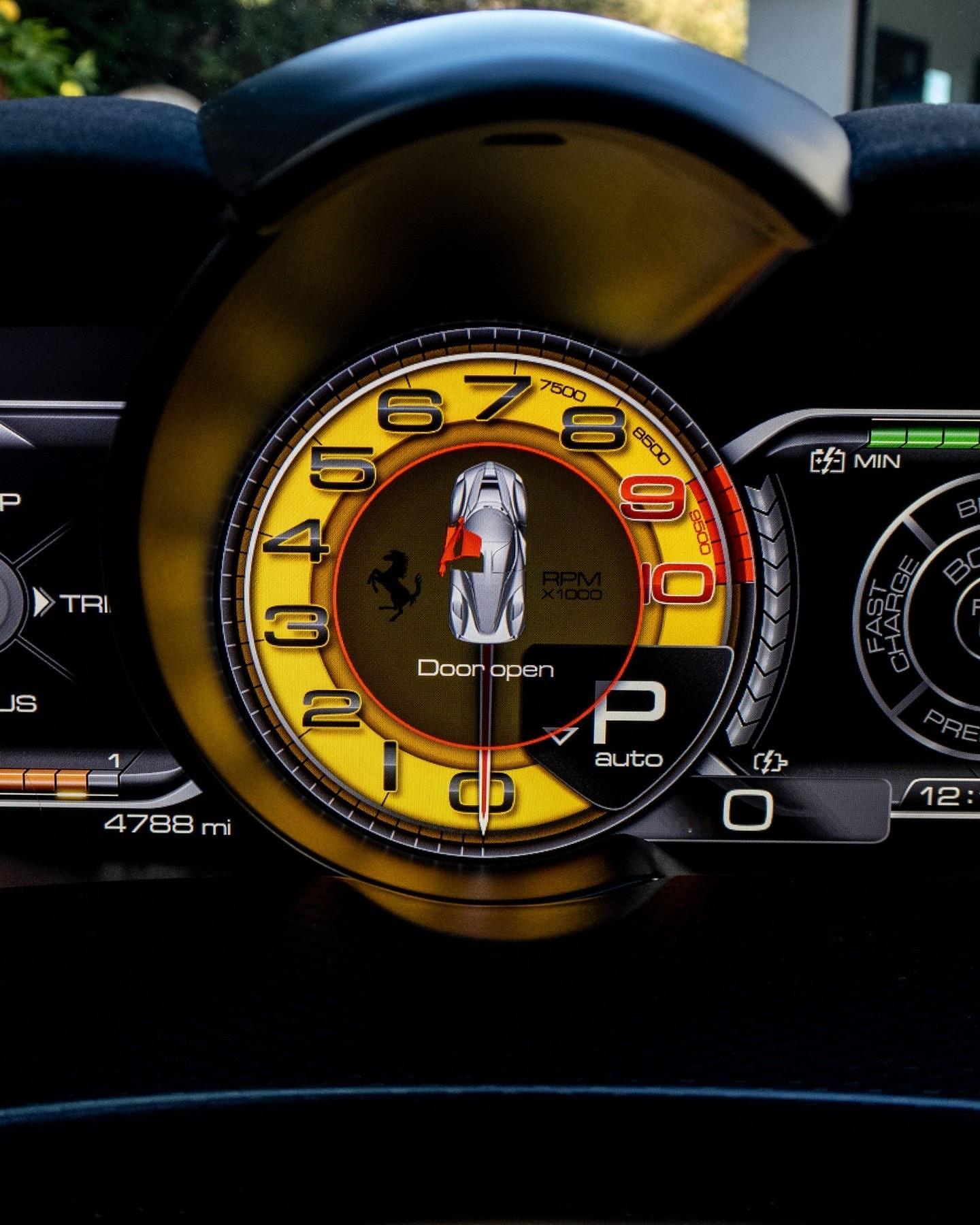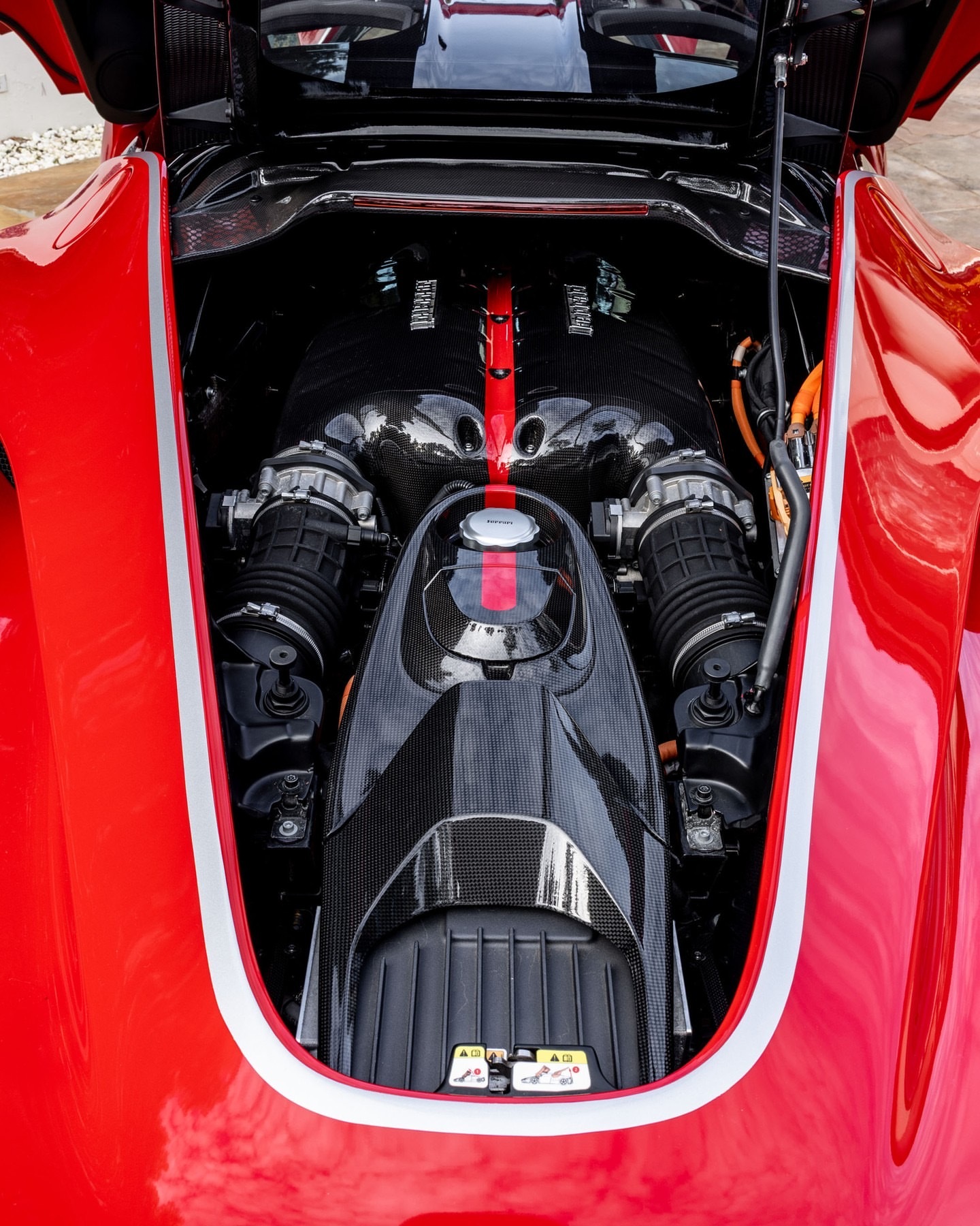 车架号211999的这台车,里程表仅记录了4,788英里,是一台备受追捧且仅有两位车主的优质车源。车身采用法拉利经典的“赛车红”配色,内饰为黑色,并搭配了全套碳纤维选装件。随车文件齐全,包含原始的配置单以及法拉利官方认证的“黄皮书”(Ferrari Classiche Yellow Book)。动力方面,它搭载了一台6.3升V12发动机,配合源自KERS(动能回收系统)的电动机,共同向后轮输送高达949马力的综合功率。