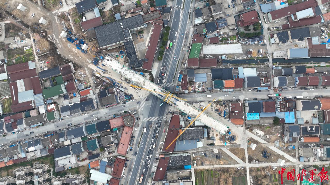 1月27日夜,在浙江宁波市前湾新区长河镇,经过2个小时连续作业,新建南通至宁波高速铁路(以下简称通甬高铁)慈溪特大桥A段跨芦庵公路连续梁顺利合龙,标志着该标段连续梁全部合龙,为后续架梁作业奠定了坚实基础。