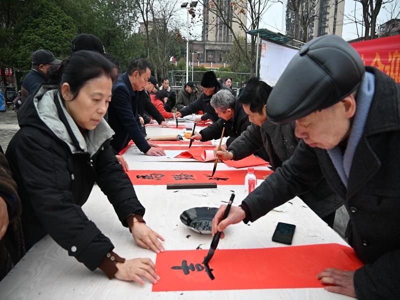 雨湖融媒1月29日讯(通讯员李湘)新春将至,岁寒情暖。为弘扬中华优秀传统文化,营造欢乐祥和、文明和谐的浓厚节日氛围,1月29日,鹤岭镇红旗社区携手睦邻社工服务站、锰城书画协会共同举办“红旗映春晖·翰墨送福来”写春联送福字主题活动。活动以笔墨为媒介,以祝福为纽带,为社区居民送去了一份别具匠心、情深意浓的新春文化贺礼。