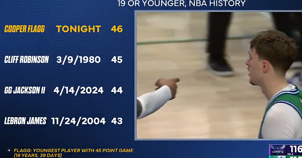 弗拉格上篮再中狂砍46分,创造历史19岁及以下球员得分记录