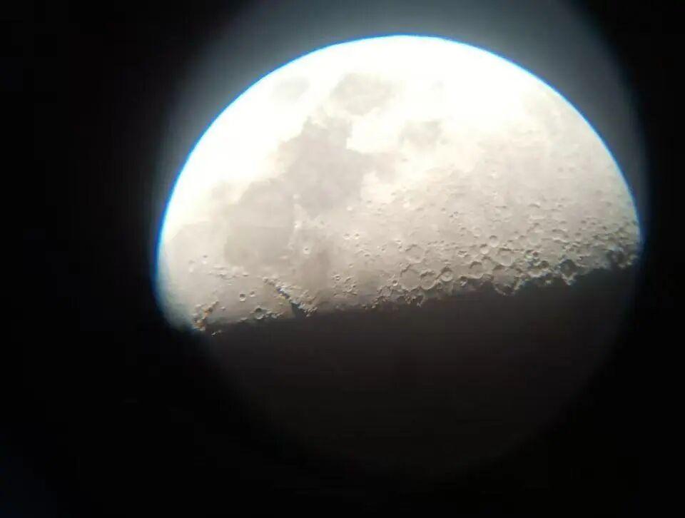 通过自制望远镜观察到的月球。受访者供图