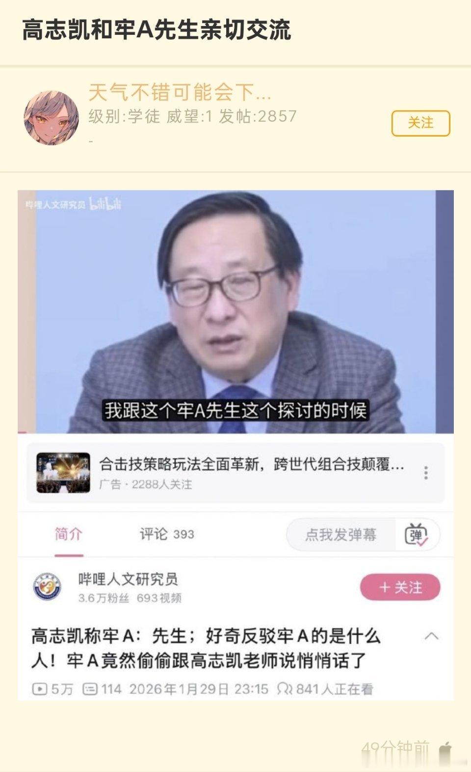 🔻高志凯和牢A先生亲切交流。🔻讨论美国斩杀线。牢A发博澄清网络谣言