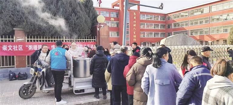 活动中,各社区结合实际推出暖心举措:西河社区党支部精心熬煮腊八粥,在现场为居民暖心派送;小镇社区组织150余名70周岁及以上老人齐聚社区日间照料中心共品热粥,针对高龄、行动不便的老人,工作人员还将腊八粥分装至保温桶中上门派送;月亮湾社区采取“现场派送+上门配送”的方式,为辖区数十位老人送去节日祝福;东风社区邀请居民亲手参与腊八蒜腌制,体验传统民俗乐趣;崇文社区则特别为环卫工人送上热粥,一碗粥不仅暖了身体,更暖了人心。